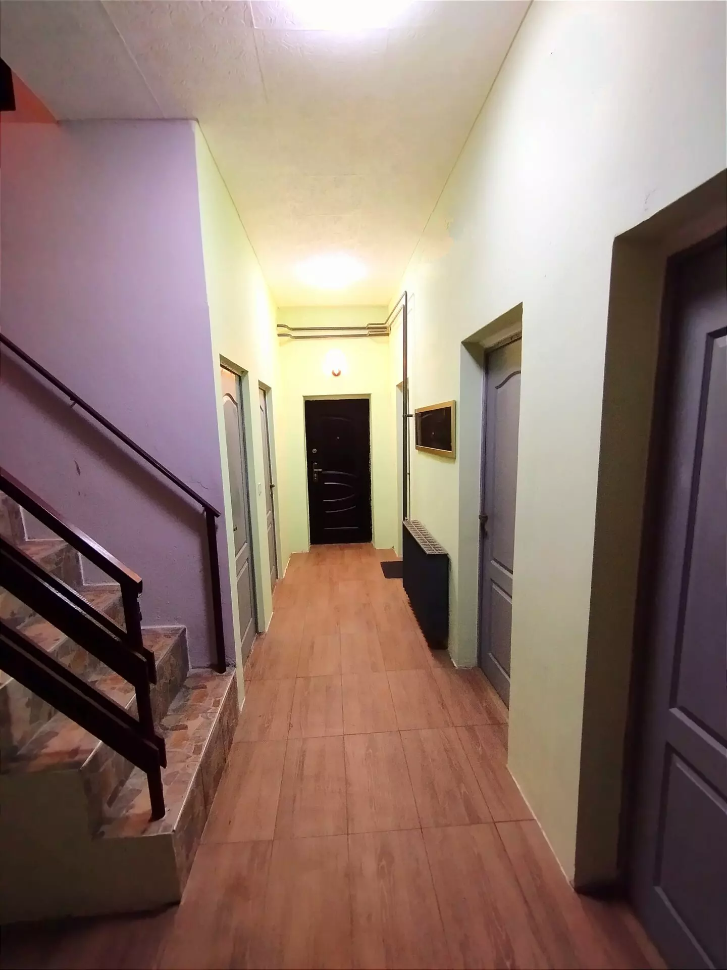 Moving up to the first floor, there are two more rooms. One of them is 11.84 square meters and comes with its own balcony, a nice little 5.26 square meter spot to enjoy some fresh air. The second room on this floor is 9.76 square meters. This floor also has a storage room. Plus, there’s an area that’s 6.59 square meters which already has water and sewage connections, so it’s set up to be turned into a second bathroom if you want.