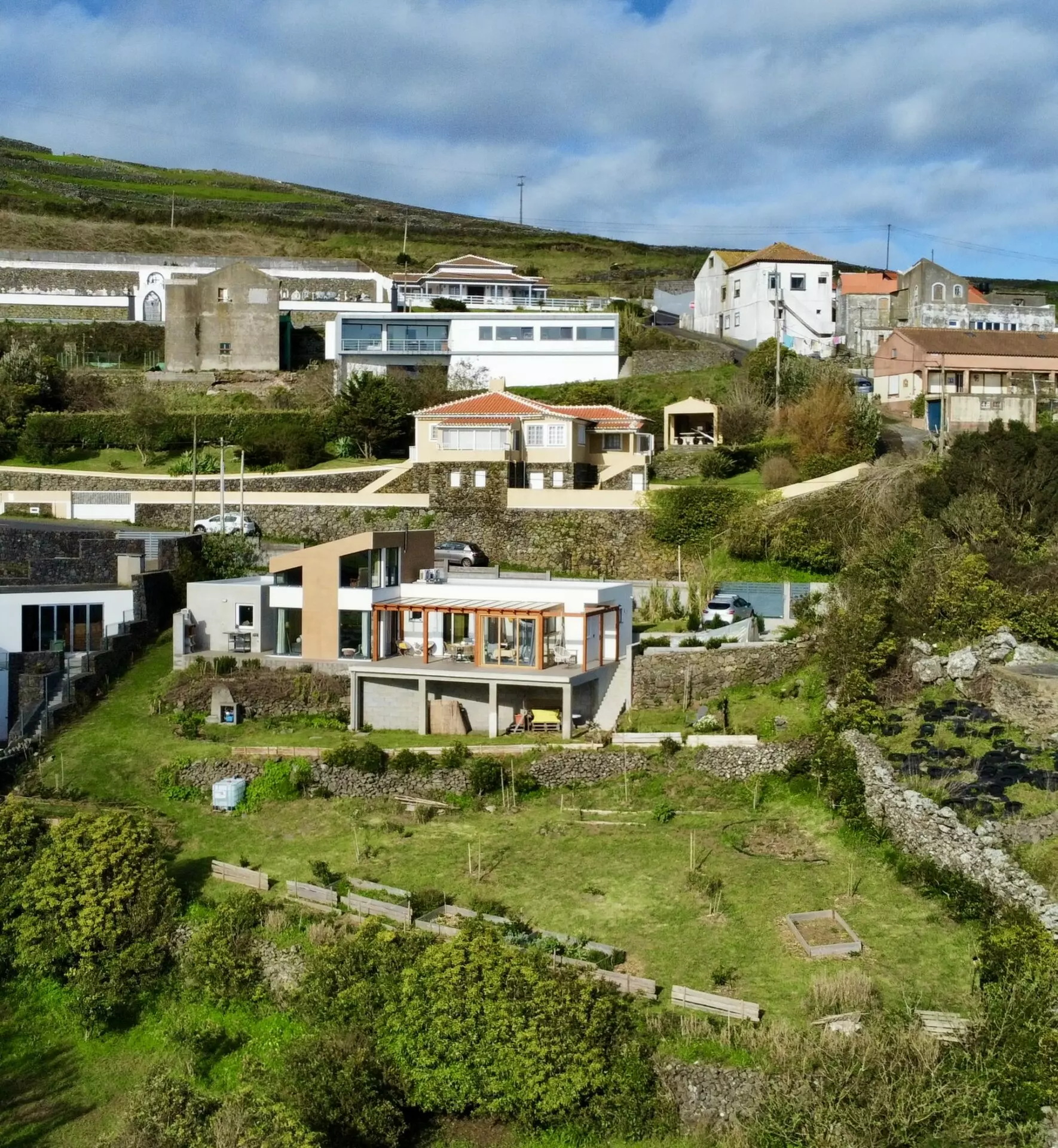 A newly built, southwest-facing modern home located in a unique microclimate zone on Terceira Island (Azores), offering open panoramic ocean views and a sunny terrace. Surrounded by a traditionally landscaped and walled garden with a variety of young fruit trees, this cozy and dry home provides a peaceful opportunity for eco-friendly living in a green sanctuary.