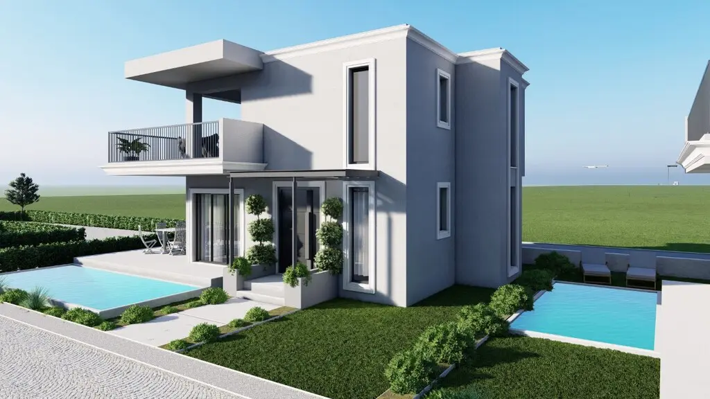 This is a 2-storey villa currently under construction, located in the suburbs of Kavala. The total living area is 110 square meters.