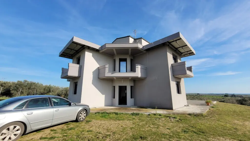 This is a four-story villa with a total area of 240 square meters, located in the suburban area of Thessaloniki.