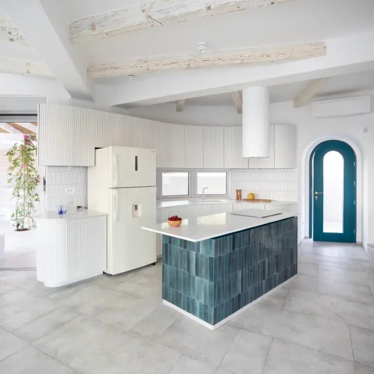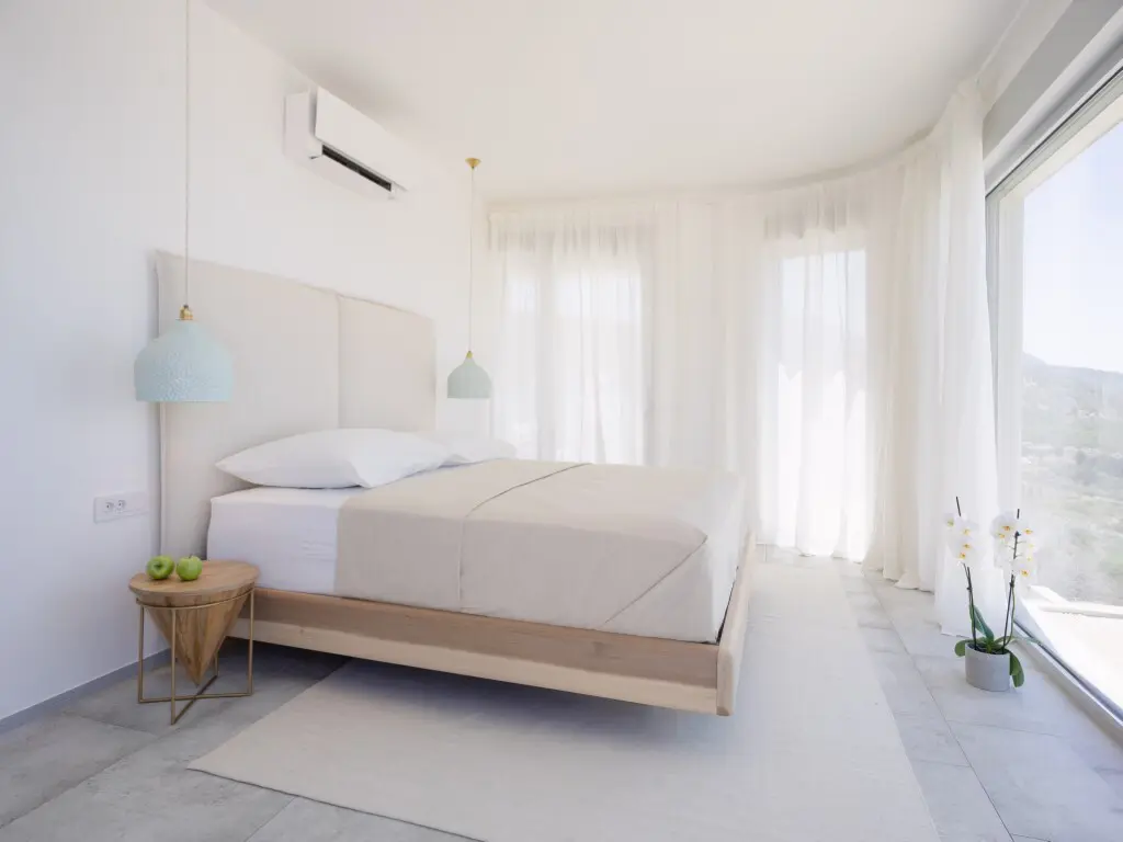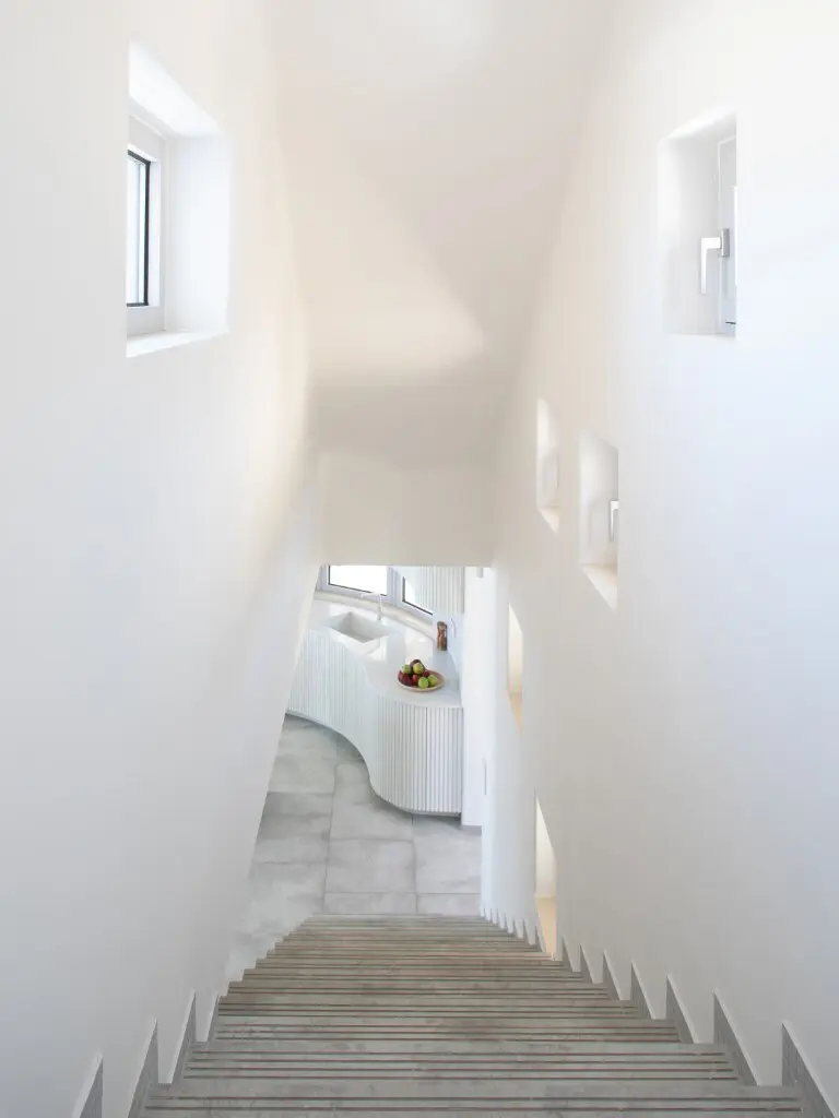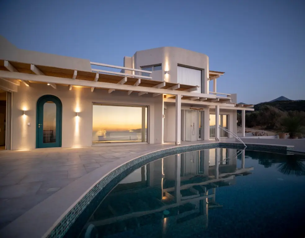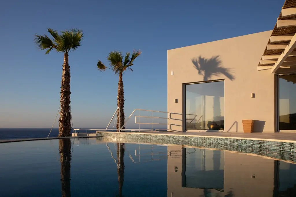 This villa, spanning 288 square meters, is located in Crete. From its windows, you can see a view that encompasses the city, the sea, and the mountains.