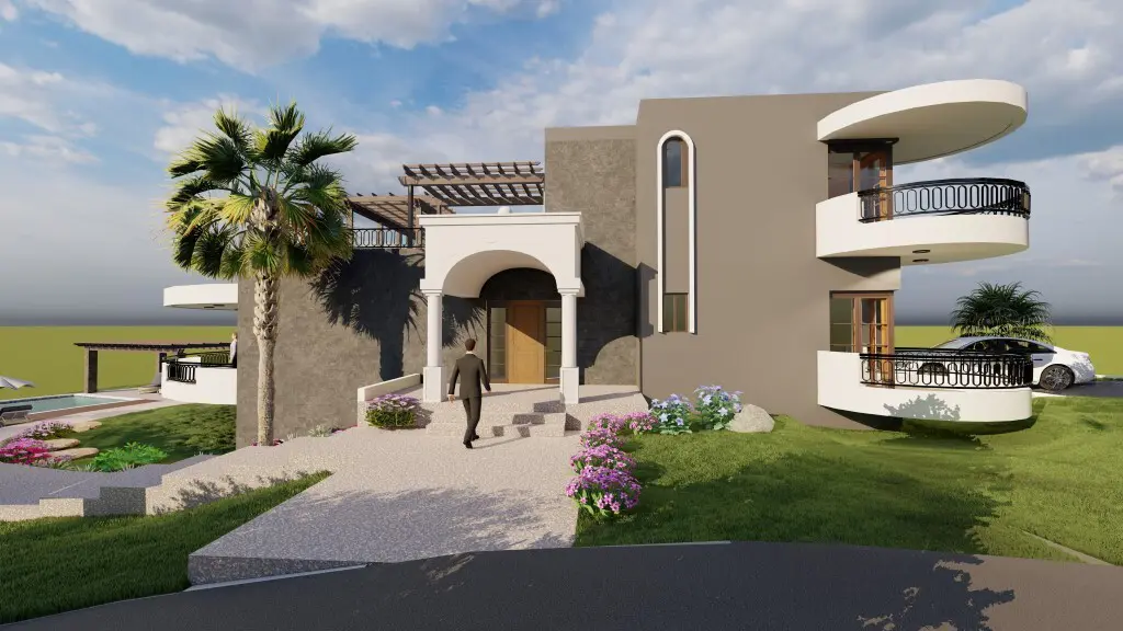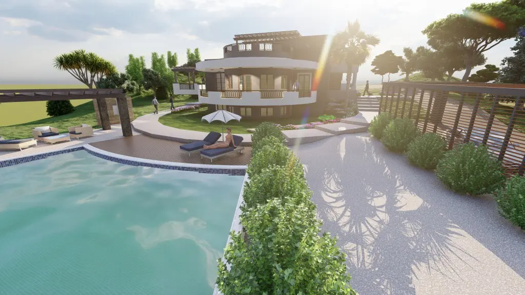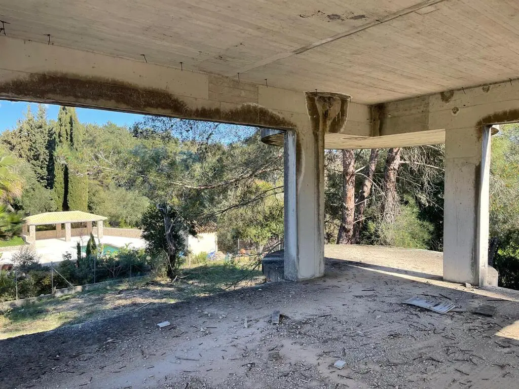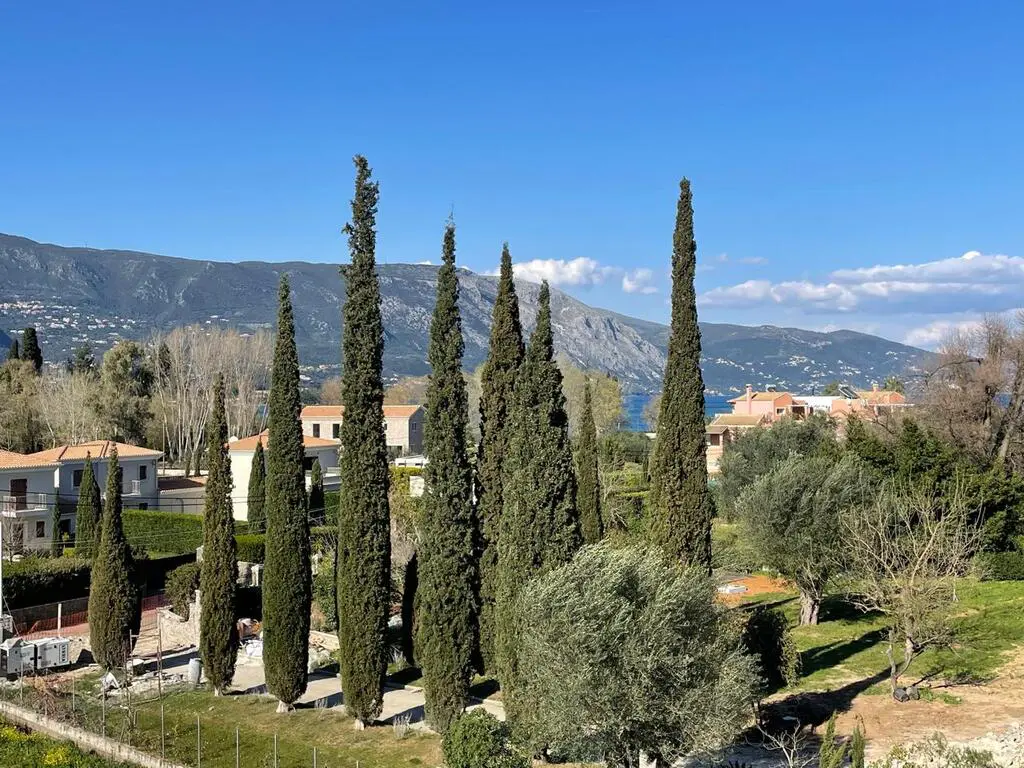 This is a villa currently under construction, located on the island of Corfu. The property spans 466 square meters and offers views of the mountains from its windows.