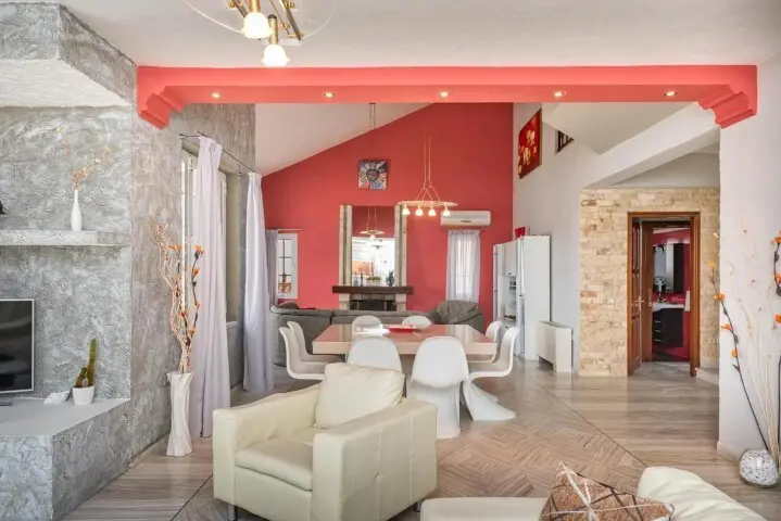 A magnificent view of the sea, the mountain, the forest opens up from the windows. There are: solar panels for water heating, a fireplace, air conditioning, heating, a barbecue area. The owners will be leaving the furniture with the sale. Extras included with the property: parking space, garage. The property boasts a swimming pool of private use.