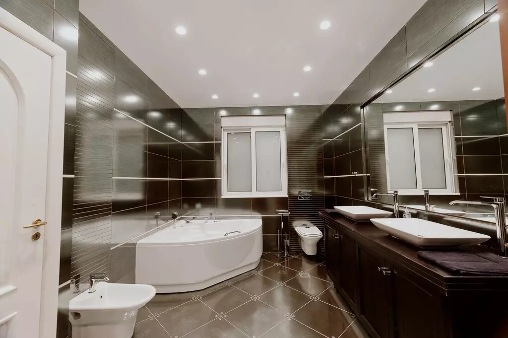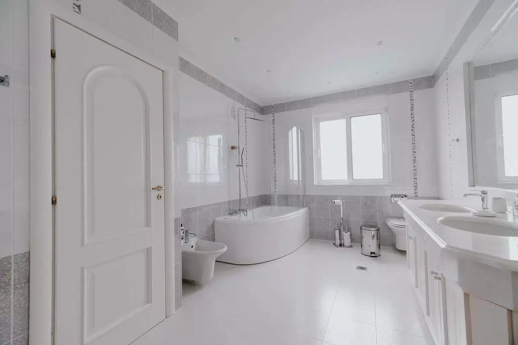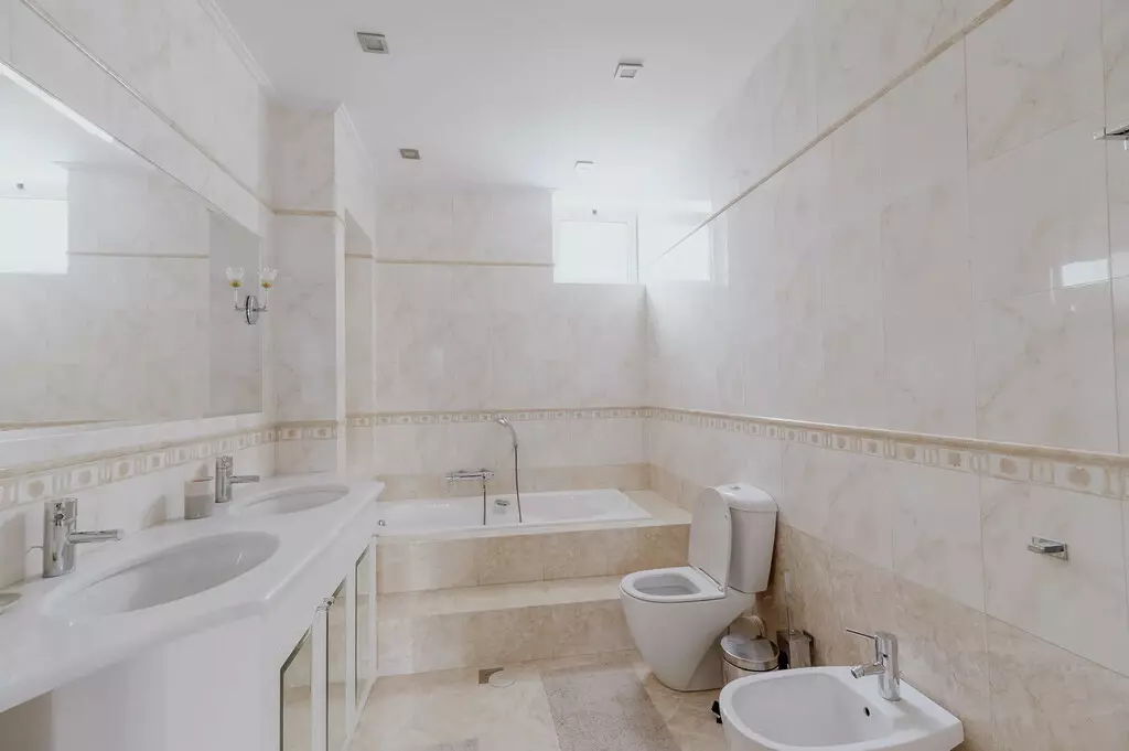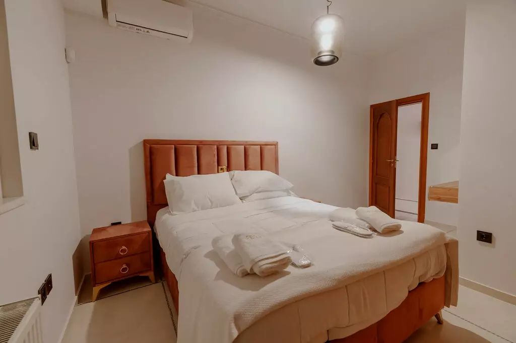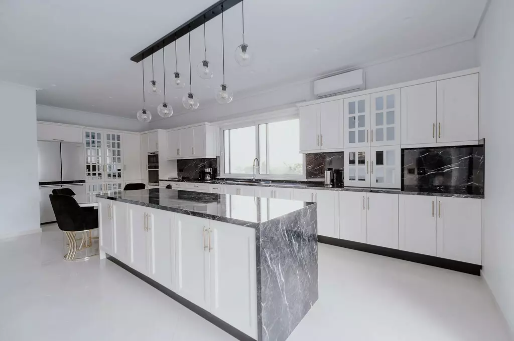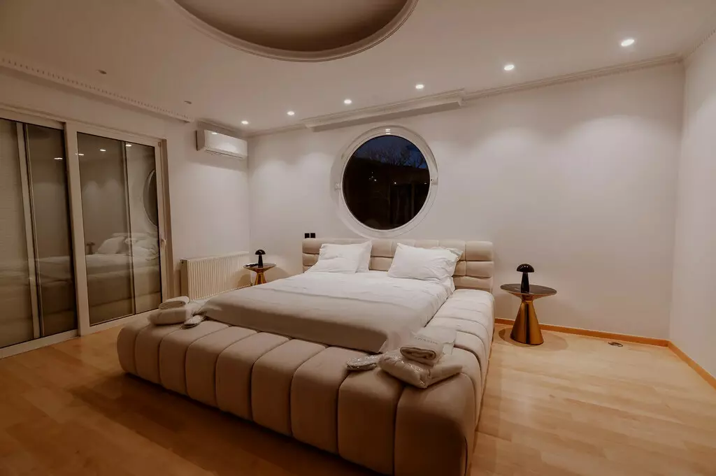 The basement of the villa comprises three bedrooms, one kitchen, and a shower room with a WC. This area is perfect for guests or extended family, offering private sleeping quarters and essential amenities.