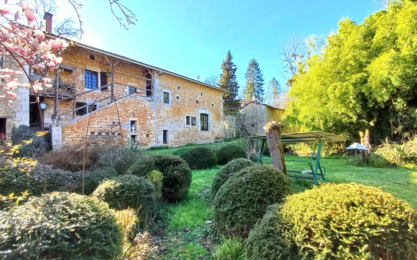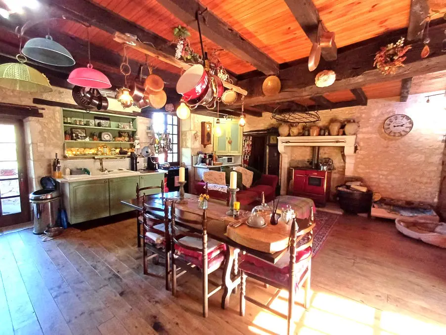 * Features: Original features retained, 5 bedrooms, 3 bathrooms, vast living room (75 m²), traditional country kitchen (40 m²), wooded grounds, covered pool (5 x 3m), various outbuildings, fibre internet.