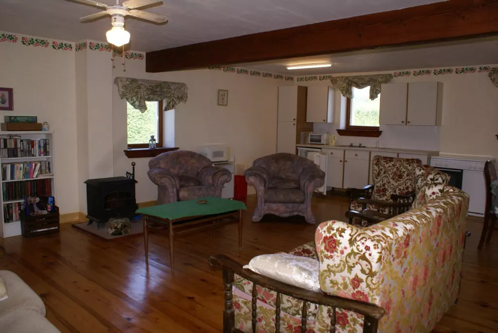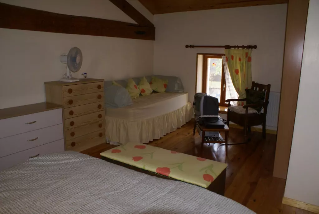 This setup can work well for a bed and breakfast model, allowing for multiple streams of rental income. The property includes a games room, which features a complete kitchen corner and stove. This space can serve as a kitchen and sitting area that connects conveniently to the three bedrooms, potentially transforming it into a large third gite with access to the back terrace and garden.