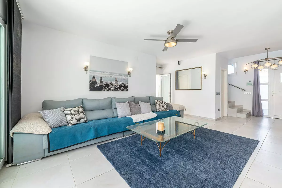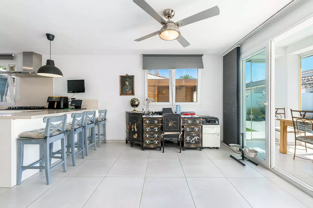 Ground Floor: On the ground floor, you will find a bright living room that allows direct access to a covered terrace with views of the pool. The dining area is adjacent to a fully equipped kitchen, along with a guest toilet for added convenience.