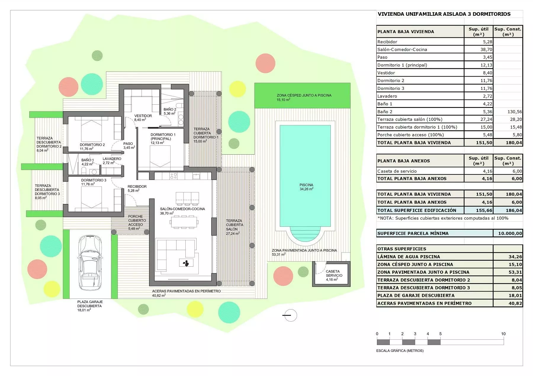 These villas come with a variety of models to choose from, featuring 2, 3, or 4 bedrooms and 2 bathrooms, one of which has an en suite. Designed on a single floor, these layouts prioritize accessibility and comfort. The final pricing depends on the chosen design, construction system—whether slab or structure—and the selected plot. For reference, a plot priced at €60,000 has been considered. If you prefer a different plot, adjustments will be made accordingly to reflect the change in price.