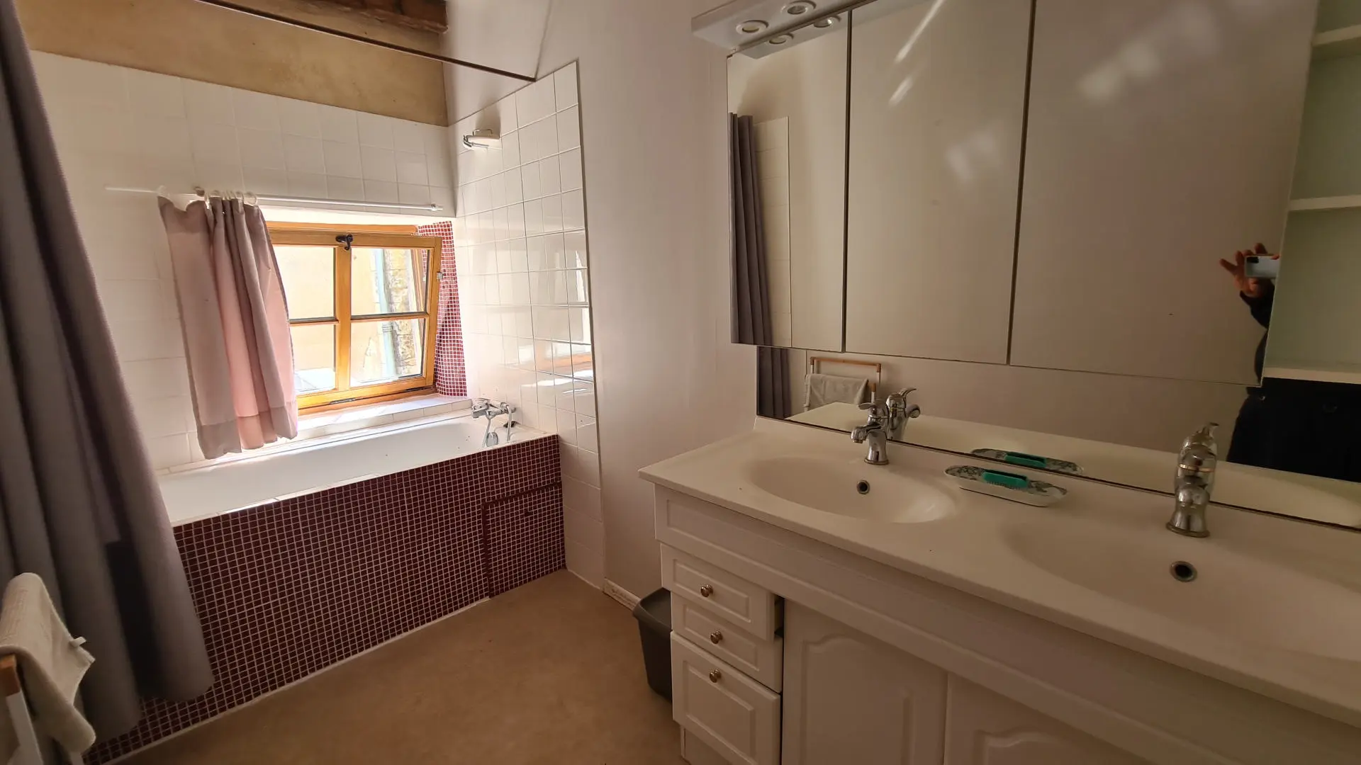 Located in the center of a historic village, this property offers a blend of traditional elements and modern conveniences. The restoration process has maintained key features that mark the property’s appeal, creating a welcoming atmosphere throughout.