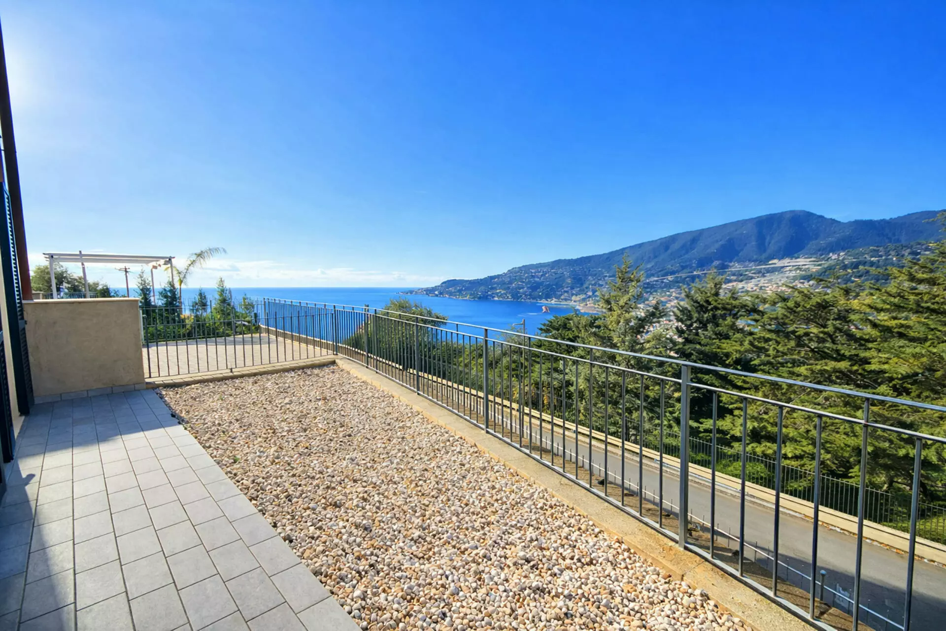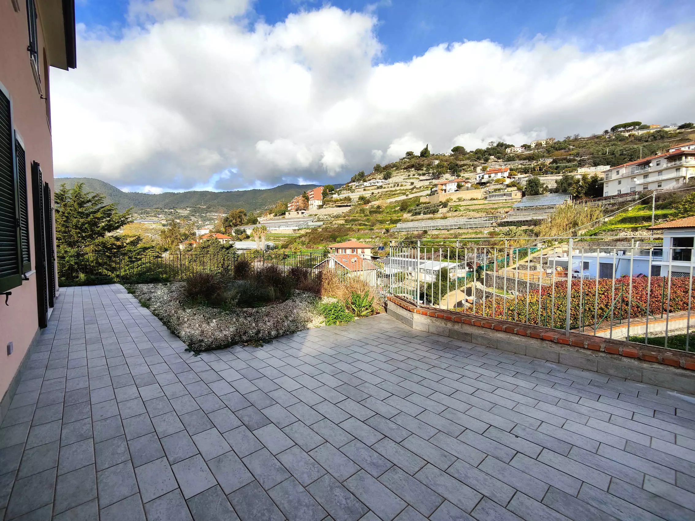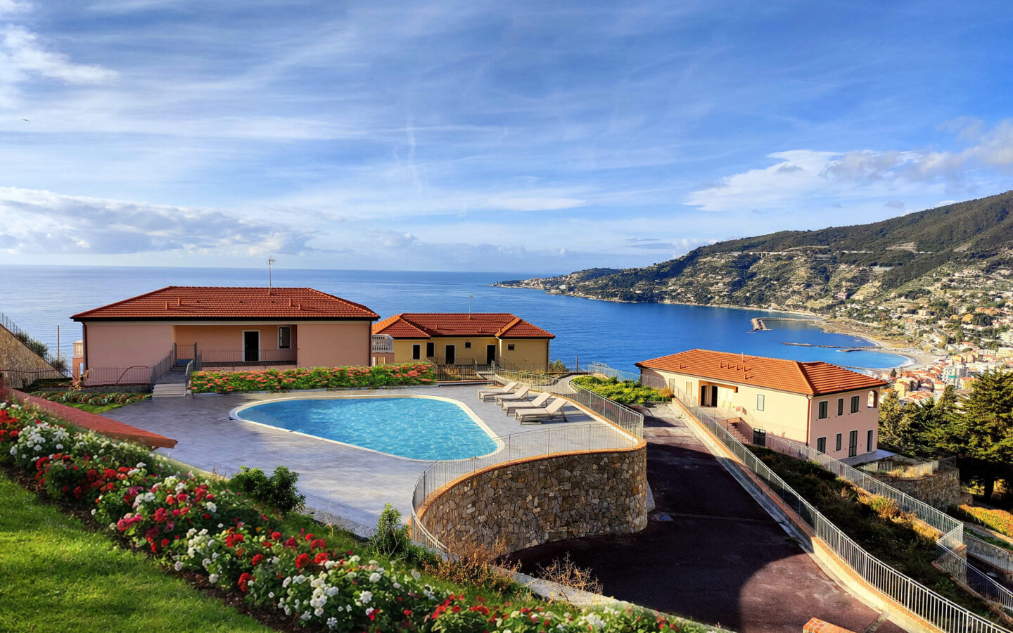 Giardino e terrazzi progettati per una fruizione continuativa degli spazi all’aperto, valorizzando il clima temperato della Riviera dei Fiori e l’ampia vista mare in ogni periodo dell’anno.