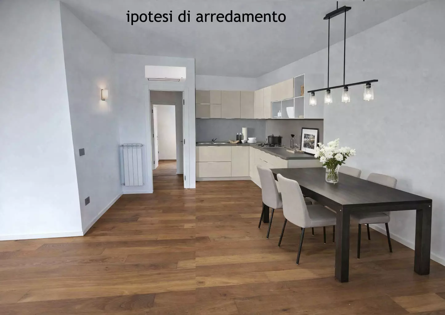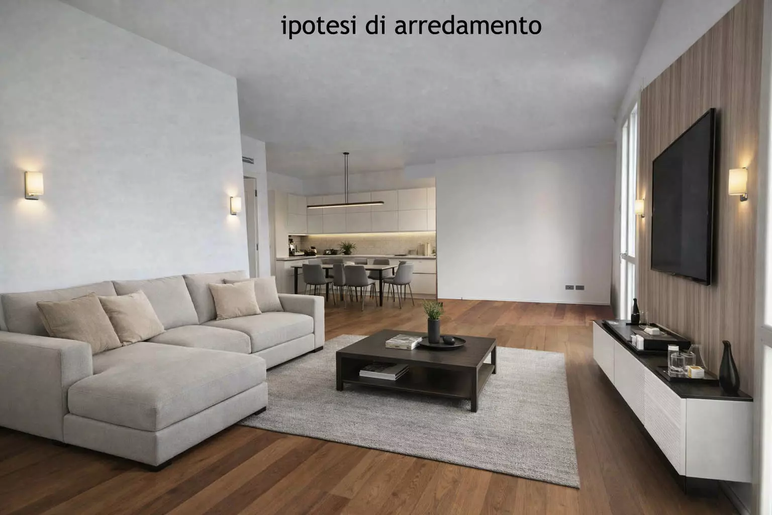 Zona giorno composta da grande soggiorno con angolo cottura, luminosa e ben organizzata