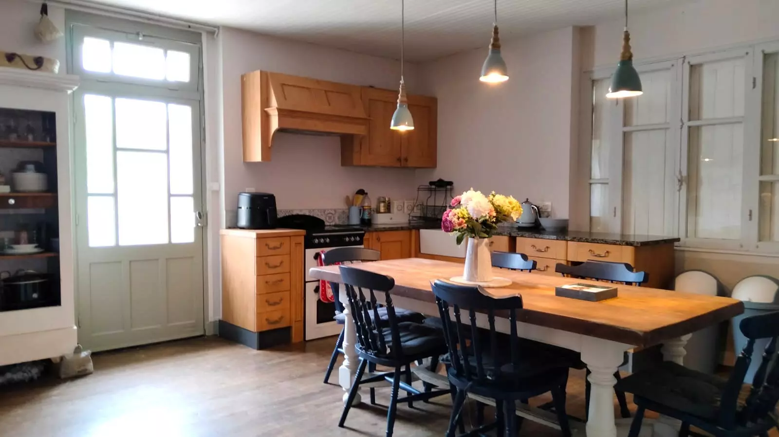 The riverside village of Aunac is just a short bike ride away, providing access to essential services such as doctors, a boulangerie, butchers, épicerie, and a restaurant/bar. Nestled in a tranquil elevated hamlet, this property is positioned away from busy roads and surrounded by countryside. This old stone home is ready for immediate occupancy. It is set over two levels, featuring three bedrooms—one located on the ground floor—and two bathrooms, one on each level. The downstairs living room is bright and includes a wood burner. Additional spaces comprise a laundry area, a WC, a garage, and a country kitchen-diner that offers direct access to a courtyard, suitable for outdoor dining.