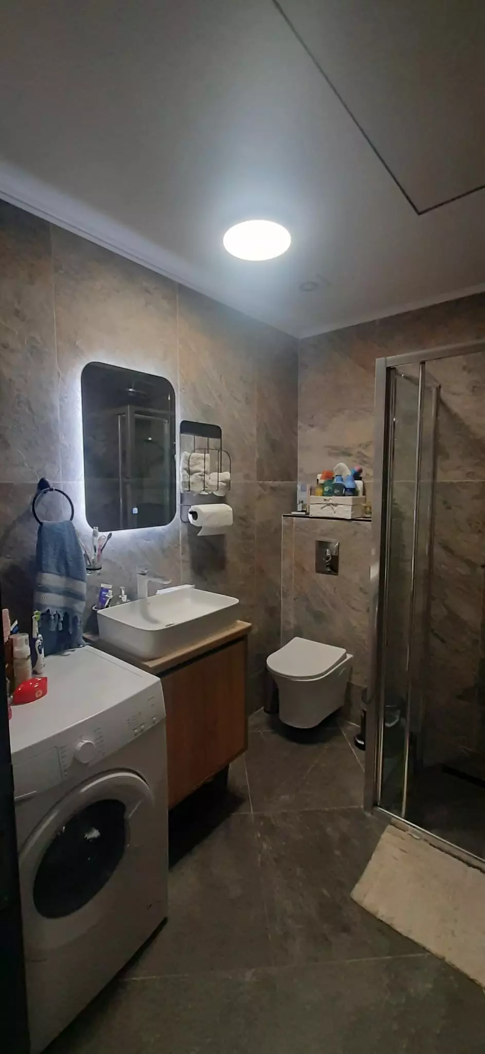 In areas requiring moisture resistance, imported ceramic tiles from Spain and Italy have been used. The bathroom fixtures, including faucets, are imported, first-class Italian products. The bathroom cabinets and shower enclosures were custom-designed. The kitchen cabinets are from the Matis brand, made of high-quality MDF. All interior doors are high-quality furniture doors. The flooring throughout the house is high-quality laminate. Each room is fitted with LED lighting. For internet connectivity, local area network cabling has been installed in every room. Additionally, the infrastructure for air conditioning is prepared in each room, allowing for easy installation.