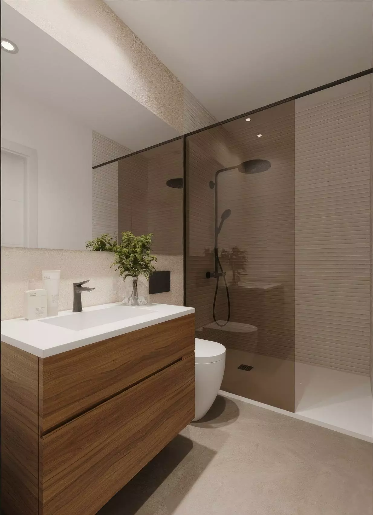 The residential complex consists of small phases, each with only two blocks containing six homes. This layout ensures privacy and a welcoming atmosphere. Each apartment features two bedrooms and two full bathrooms, along with large terraces. You have options to choose from: