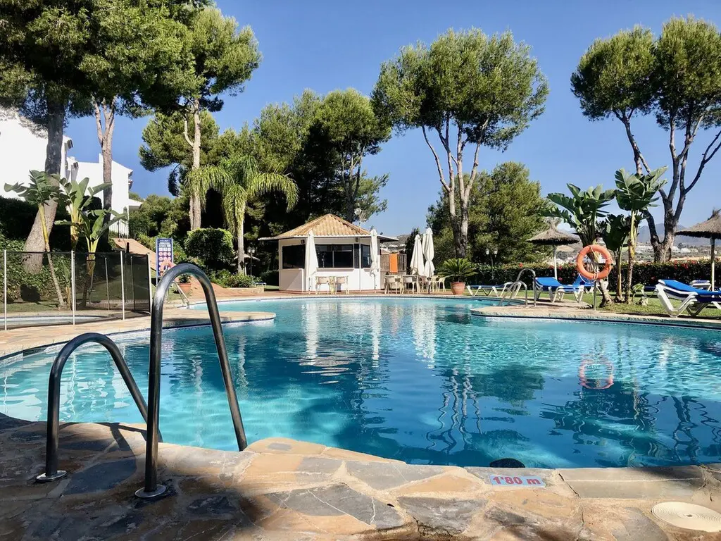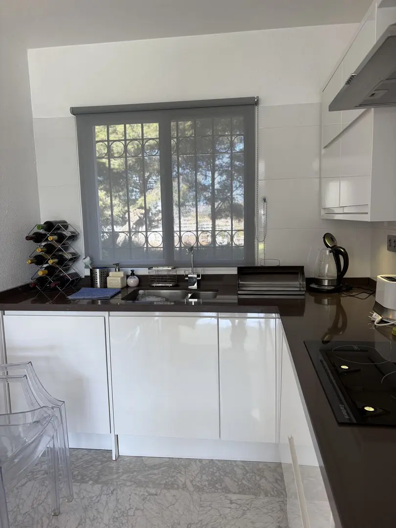 This apartment is situated on the ground floor, offering easy access. It’s conveniently located close to golf courses, and the fitted kitchen is a practical and modern feature. Parking is available on the street. You’ll have access to a communal pool and your own private garden, along with the community garden. The property faces southwest, which is ideal for maximizing natural light and enjoying pleasant views of the garden, partial sea views, and the pool.