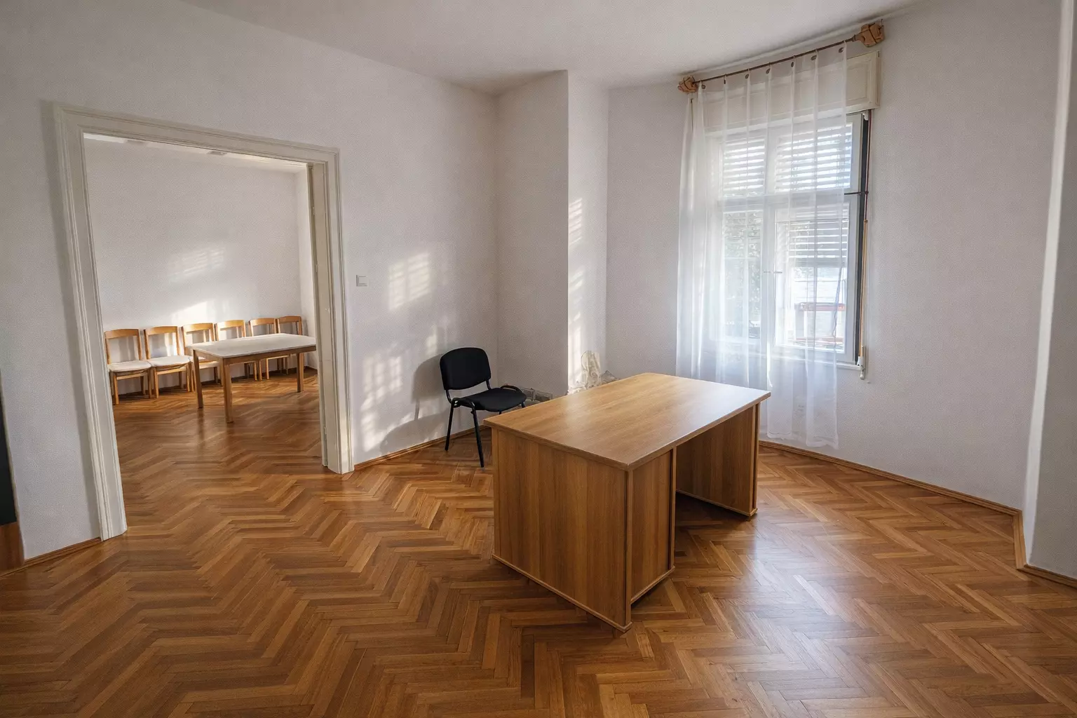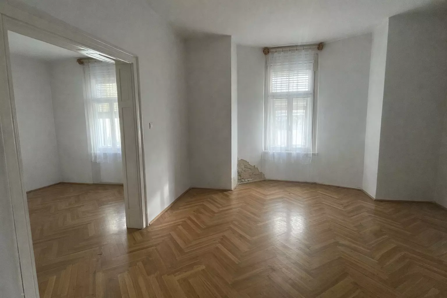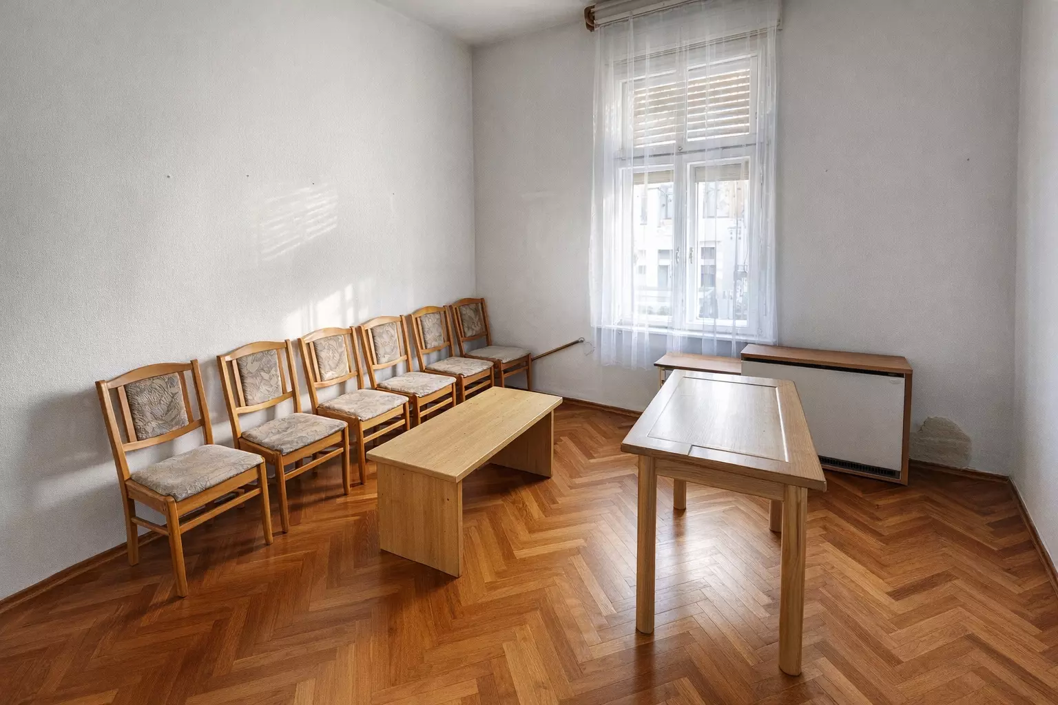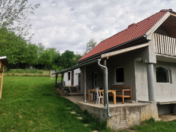 The building previously functioned as a medical practice and therefore features several separately accessible rooms, making it highly suitable for both residential and business or institutional use. The property is in need of renovation; the kitchen and bathroom must be installed by the new owner, allowing it to be fully customized to personal requirements. Heating is currently provided by a tile stove, but there is also the possibility to install a modern heating system.