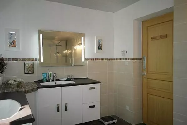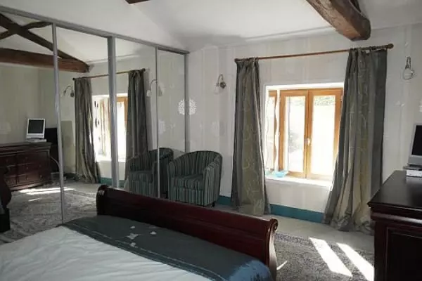 On the first floor, the gîte provides a large ensuite master bedroom measuring 23 m², along with a separate water closet of 3 m². A mezzanine area further enhances the usability of this space.