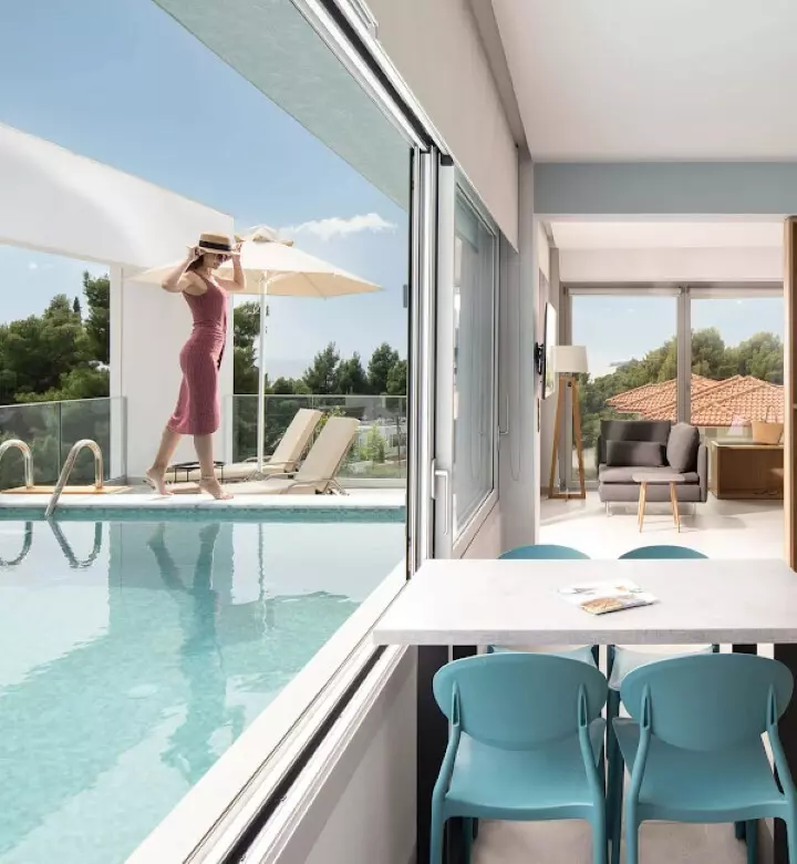 Looking for a potential investment? This hotel in Sithonia, Chalkidiki could be an interesting option. Covering an area of 210 square meters, the property features two levels, providing ample space for various uses. One of the highlights includes a striking view of both the sea and the surrounding mountains, visible from the windows.