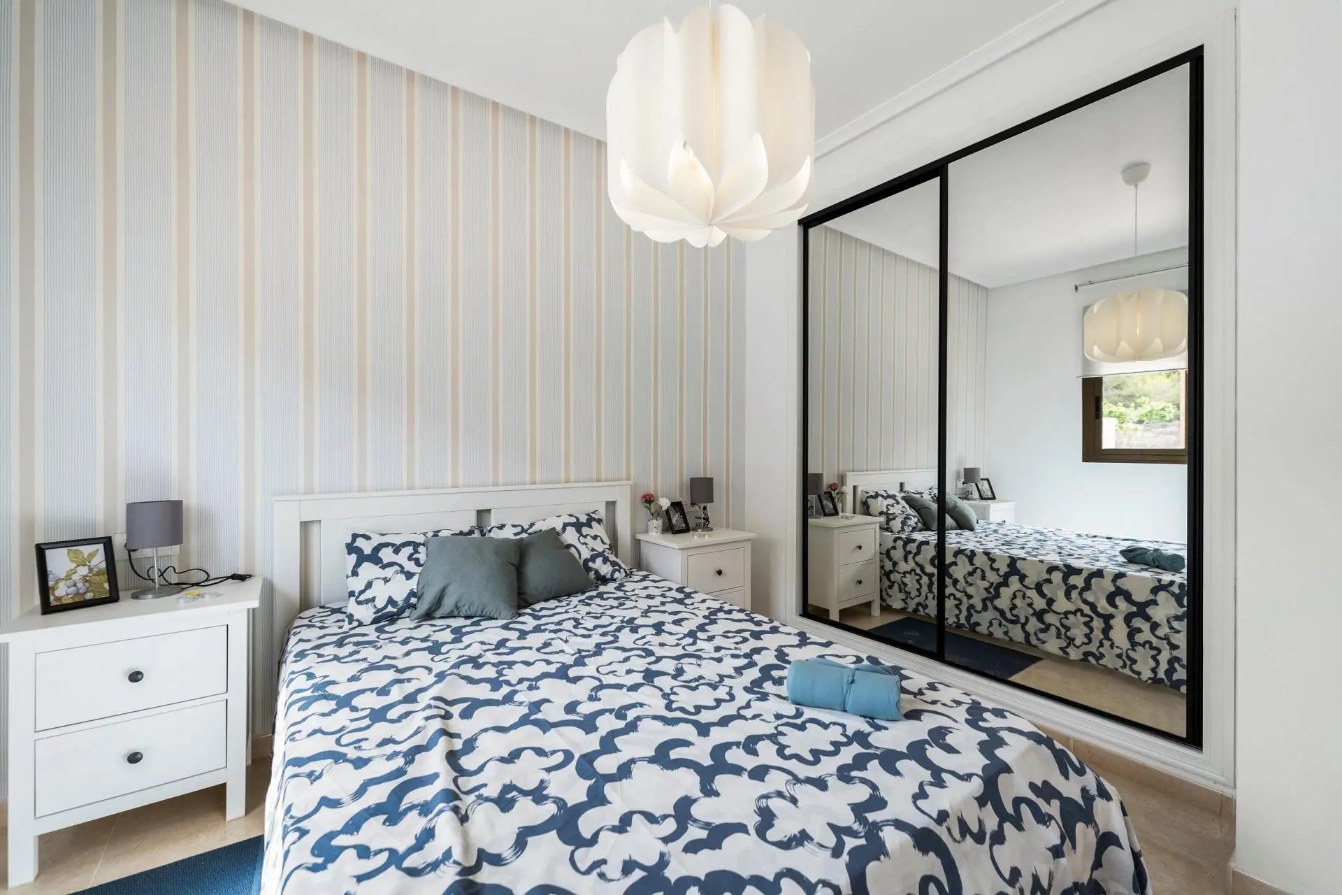 The exterior features an 82m2 front garden, a private underground parking space, and a storage room. The residential complex also includes a large communal swimming pool, perfect for enjoying the warm Mediterranean climate. Located just 15 minutes from the beach and only 5 minutes from local shops, restaurants, and bars, this property offers a perfect combination of tranquility and convenience. It’s also close to several renowned golf courses, making it an excellent choice for golf lovers and anyone seeking a holiday home or permanent residence in Spain.