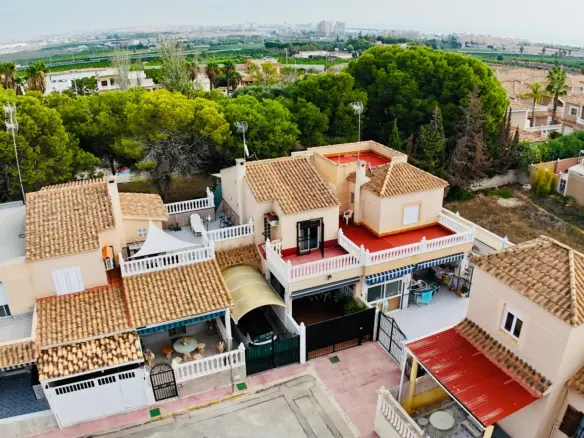 We are offering a beautiful, comfortable, and fully furnished house for direct sale from the owner. This charming property with three bedrooms is located on the sunny Costa Blanca coast in the town of Orihuela Costa. The house is situated in a quiet and picturesque neighborhood between Los Altos, Punta Prima, and La Florida – with quick access to beaches, shops, and restaurants. Property Description: This is a two-story mid-terrace bungalow (ground floor + upper floor), completely renovated both inside and out with great attention to detail. The house is fully furnished and equipped – ready to move in immediately, ideal for personal use or as a rental investment. The house has 3 comfortable bedrooms – two on the upper floor and one on the ground floor – making it a perfect choice for families, remote workers, or investors looking for a high rental potential property. Ground Floor: Bright living room with a fold-out sofa, large dining table, chest of drawers, and air conditioning Modern kitchen with new appliances and spacious cabinets First bedroom with a double bed, bedside table, and wardrobe Stylish bathroom with shower and modern fittings Utility room (boiler, washing machine) Storage space under the stairs Upper Floor: Second (main) bedroom: large double bed, two IKEA wardrobes, chest of drawers, bedside table, air conditioning + separate, bright workspace with a view Third bedroom: two single beds, wardrobe, bedside table, air conditioning, and distant sea view Second bathroom with a spacious shower, electric heater, new WC, and elegant finishes Tastefully decorated throughout – high-durability vinyl flooring, smooth wall finishes, large-format tiles, new lighting, ceiling fans, and modern furniture – all included in the price. Terrace and Garden: The house faces east and south, ensuring plenty of sunshine throughout the day. The terrace is covered, providing shade during the hottest hours. Furnishings: stylish seating set (bench, armchairs, coffee table) On the lower level – dining set (table + 4 chairs) Additional Features: New front door Parking available in front of the house Part of a well-maintained residential community with access to a clean communal swimming pool Location: 3 km from Playa Punta Prima 4.5 km from Los Naufragos beach in Torrevieja Nearby: Consum supermarket, shopping center, restaurants, cafés, bus stops 10-minute drive to Torrevieja – a lively town with a charming marina, cultural events, and vibrant atmosphere Maintenance Costs: Community fee: only €40/month Annual property tax (IBI): approx. €200 No mortgage or financial encumbrances.