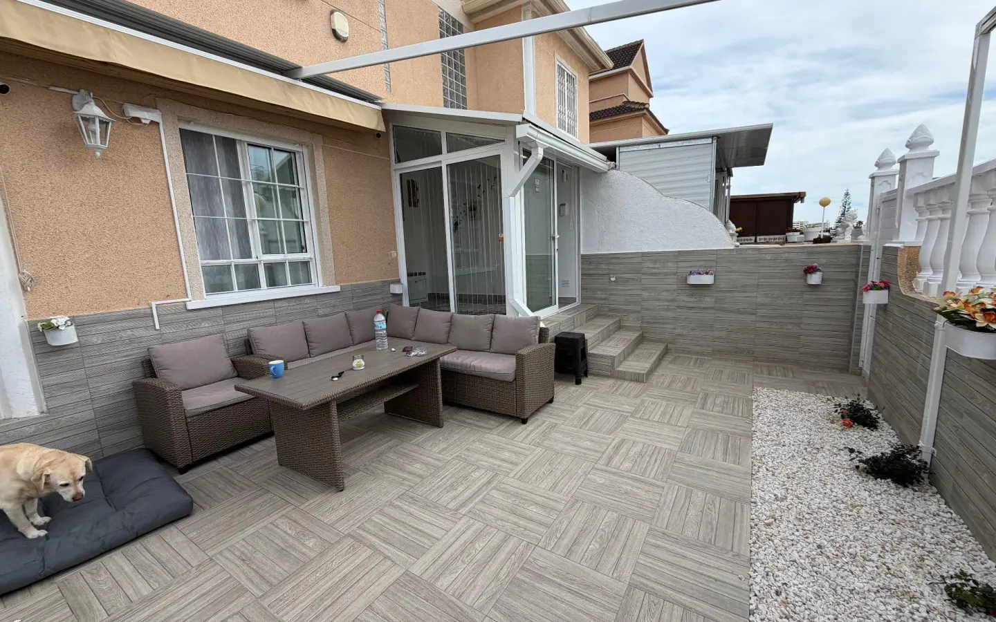 Discover this spectacular semi-detached triplex in the sought-after area of La Zenia, Orihuela Costa. With a constructed area of 120 m2 and renovated in a modern style, this property offers three spacious double bedrooms distributed across three floors, ideal for families or groups seeking comfort. On the first floor, you`ll find a large terrace perfect for enjoying the Mediterranean sun, as well as another glazed terrace that brings natural light into the dining room and connects it to the outdoors. Here you`ll also find a fully equipped independent kitchen, perfect for creating delicious family meals. The spacious living room is ideal for relaxing after a long day by the sea. On the second floor, there are two cozy bedrooms and a full bathroom; meanwhile, the third floor features an additional bedroom next to a private office, perfect for working from home or studying, plus another conveniently located full bathroom. Its strategic location allows for easy access by public transport and is surrounded by shopping centers, satisfying all your daily needs without any additional hassle! Don`t miss this unique investment opportunity so close to the ocean (just a few minutes` drive) and make it your dream home today. Shall we schedule a visit?