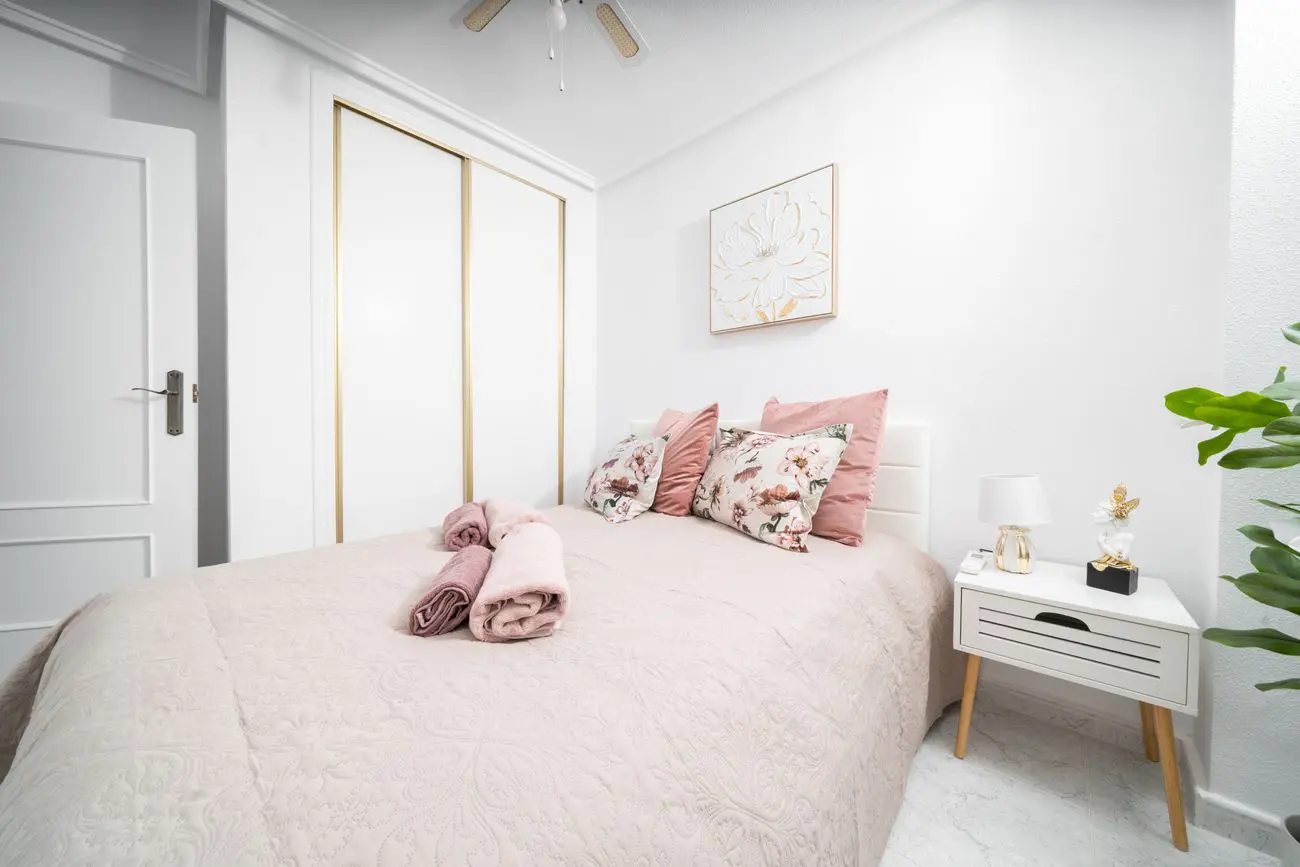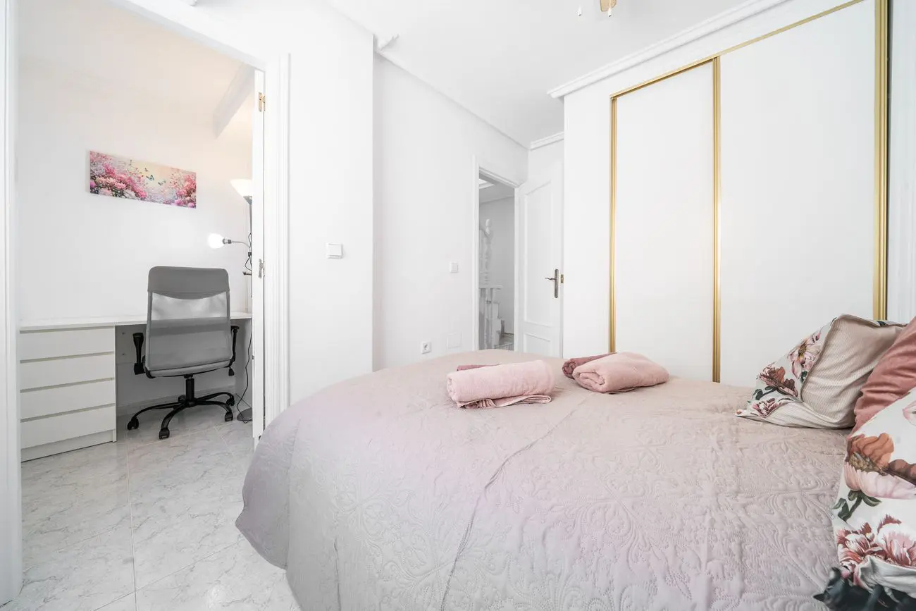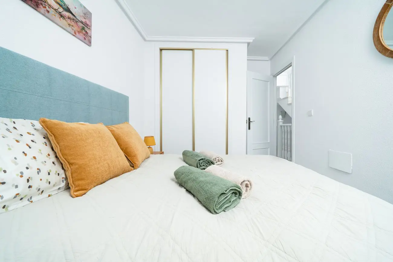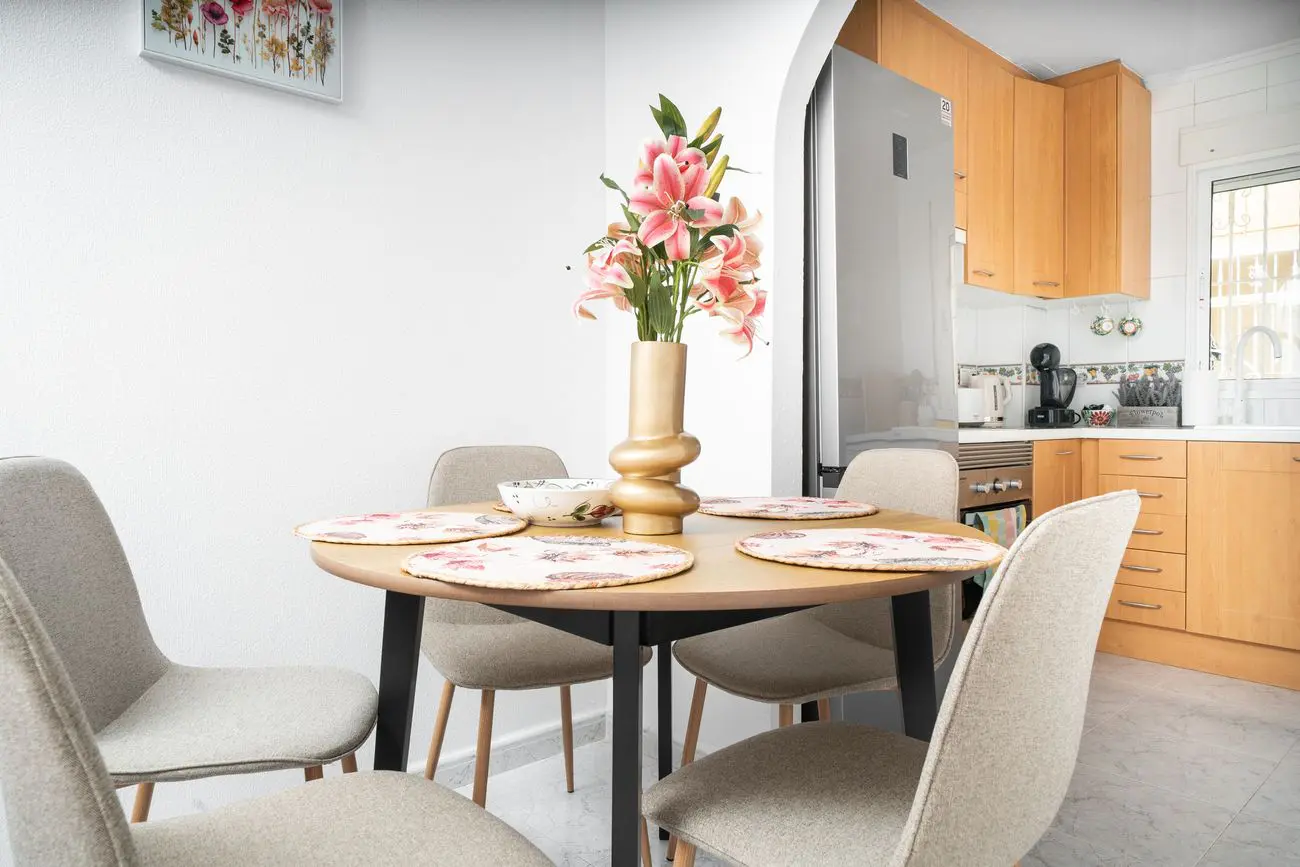Immerse yourself in the charm of Mediterranean living with this beautifully renovated townhouse nestled in a serene community in Orihuela, Alicante. From the sun-kissed exterior to the sophisticated interior, every inch of this home is designed to delight and inspire.Boasting a generous 124 square meters of living space, this residence features four bedrooms, including a spacious primary bedroom that serves as a peaceful retreat after a long day. The home also includes two full bathrooms and a convenient half-bath, making morning routines as smooth as your Spanish espresso.The heart of this home is undoubtedly its cozy, well-appointed kitchen, where you can whip up delectable meals with ease. Flowing effortlessly from the kitchen is the living area, a perfect space for relaxing with family or entertaining friends, all while enjoying views of the community.Step outside, and you’ll find yourself in a tranquil urbanization that boasts a communal pool—ideal for cooling off on those sizzling summer days or lounging with a good book. The private garage ensures your vehicle is kept safe and sound, possibly dreaming of road trips along the stunning Costa Blanca.For those who venture outside, convenience is just a stone’s throw away. Satiate your appetite at La Luna Restaurante Bar located merely steps from your front door, or fulfill your shopping needs at nearby supermarkets like Aldi and Supermercado Consum. Families will appreciate the close proximity to IES Playa Flamenca, ensuring a short commute for the young scholars.This townhouse is a sun worshipper’s paradise, bathed in natural light throughout the day, thanks to its thoughtful orientation. Whether you`re basking in the morning rays with a cup of coffee or enjoying the last light of day from your private terrace, this home ensures you experience every bit of sunshine.This property isn’t just a house, it’s a lifestyle—a sanctuary where every day feels like a vacation. Whether you’re dipping in the pool, exploring local cuisine, or simply relaxing in your elegantly designed living space, this townhouse offers a blend of comfort, convenience, and luxury that makes it not just a smart investment, but a place to call home. Don’t miss your chance to own this little slice of heaven in Alicante!