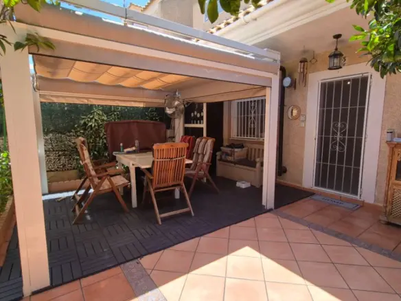 Elegant, fully renovated townhouse offering 3 spacious bedrooms and 3 modern bathrooms. The property features a generous, contemporary kitchen equipped with brand-new appliances, along with all-new, high-quality furnishings — all included in the sale price. The bright and open-plan living and dining area creates an inviting atmosphere, while each bedroom is fitted with built-in wardrobes for optimal storage. The villa sits on a plot of approximately 100 m2 with a private garden, and residents can enjoy access to a communal swimming pool and landscaped green areas. Additionally, there is the option to purchase an underground parking space and a storage room of around 12 m2.