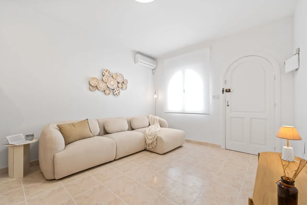 This stunning fully renovated 2-bedroom, 1.5-bathroom townhouse is ideally situated in the sought-after area of La Florida, just a short stroll from the vibrant Via Park, known for its excellent selection of bars, cafés, and restaurants. The property has been thoughtfully modernised throughout, offering a stylish and move-in-ready home perfect for holidays, rental investment, or year-round living. The ground floor features a bright and welcoming living area, a contemporary kitchen, and a convenient guest toilet. Outdoors, the home enjoys terraces on both the east and west sides, allowing you to enjoy sunshine or shade throughout the day—ideal for outdoor dining, relaxing, or entertaining. Upstairs, you’ll find two well-proportioned bedrooms and a modern family bathroom. One of the bedrooms opens onto a private balcony, which leads directly to a spacious rooftop solarium. From here, you can take in beautiful panoramic sea views, making it the perfect space for sunbathing, evening drinks, or simply enjoying the Mediterranean lifestyle. The location is unbeatable: Minutes from the popular shopping and leisure destination La Zenia Boulevard, a short drive to the sandy beaches of Punta Prima, surrounded by amenities, golf courses, and excellent transport links. This is a rare opportunity to own a stylish, turnkey townhouse in one of the Costa Blanca’s most convenient and lively residential areas.
