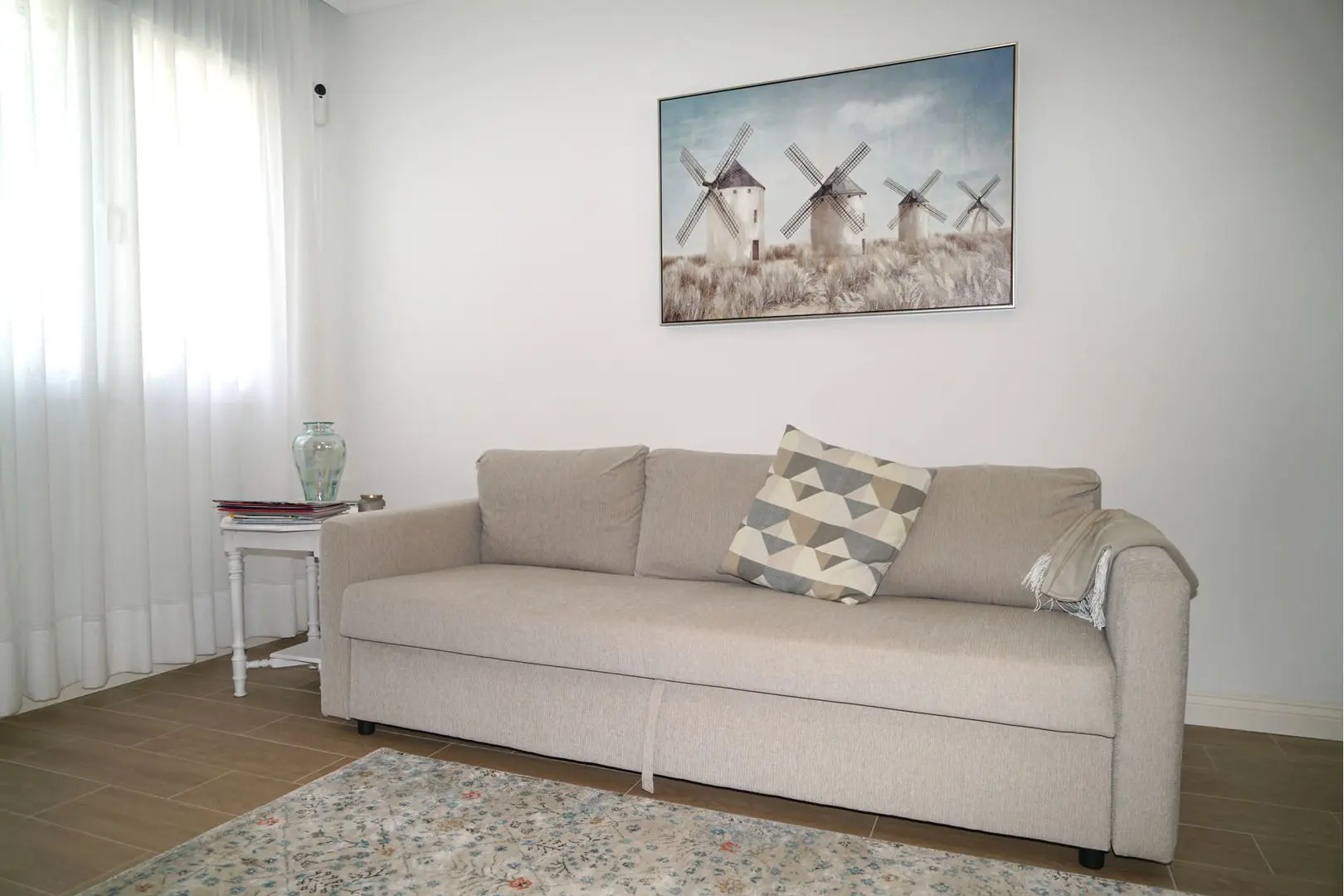 For sale townhouse in the La Zenia area of Orihuela Costa. On the first floor, there is a spacious living room combined with a kitchen, two bathrooms. On the second floor, there are three bedrooms, a bathroom, and a terrace. The house has been completely renovated, plumbing has been replaced, a new kitchen has been installed, and new furniture has been partially installed. There are underfloor heating in all bathrooms and on the first floor, as well as new Solar brand windows installed. The townhouse is sold fully furnished and with necessary electrical appliances. The property is located in a green area 350 meters from La Zenia beach and 950 meters from the large shopping center La Zenia Boulevard. All necessary infrastructure is within walking distance: pharmacies, shops, supermarkets, cafes, and restaurants. When buying real estate in Spain, you can apply for residency in Spain. Our company assists in obtaining any type of residency permit.