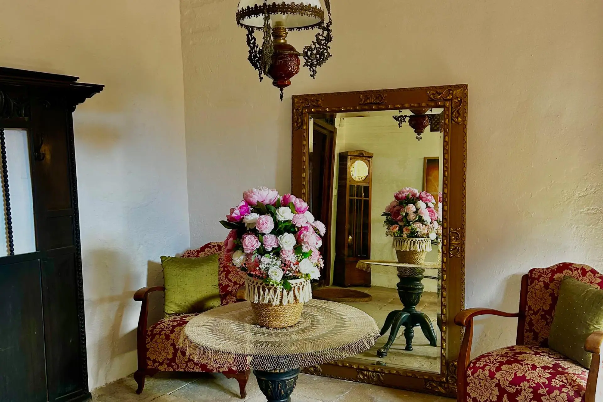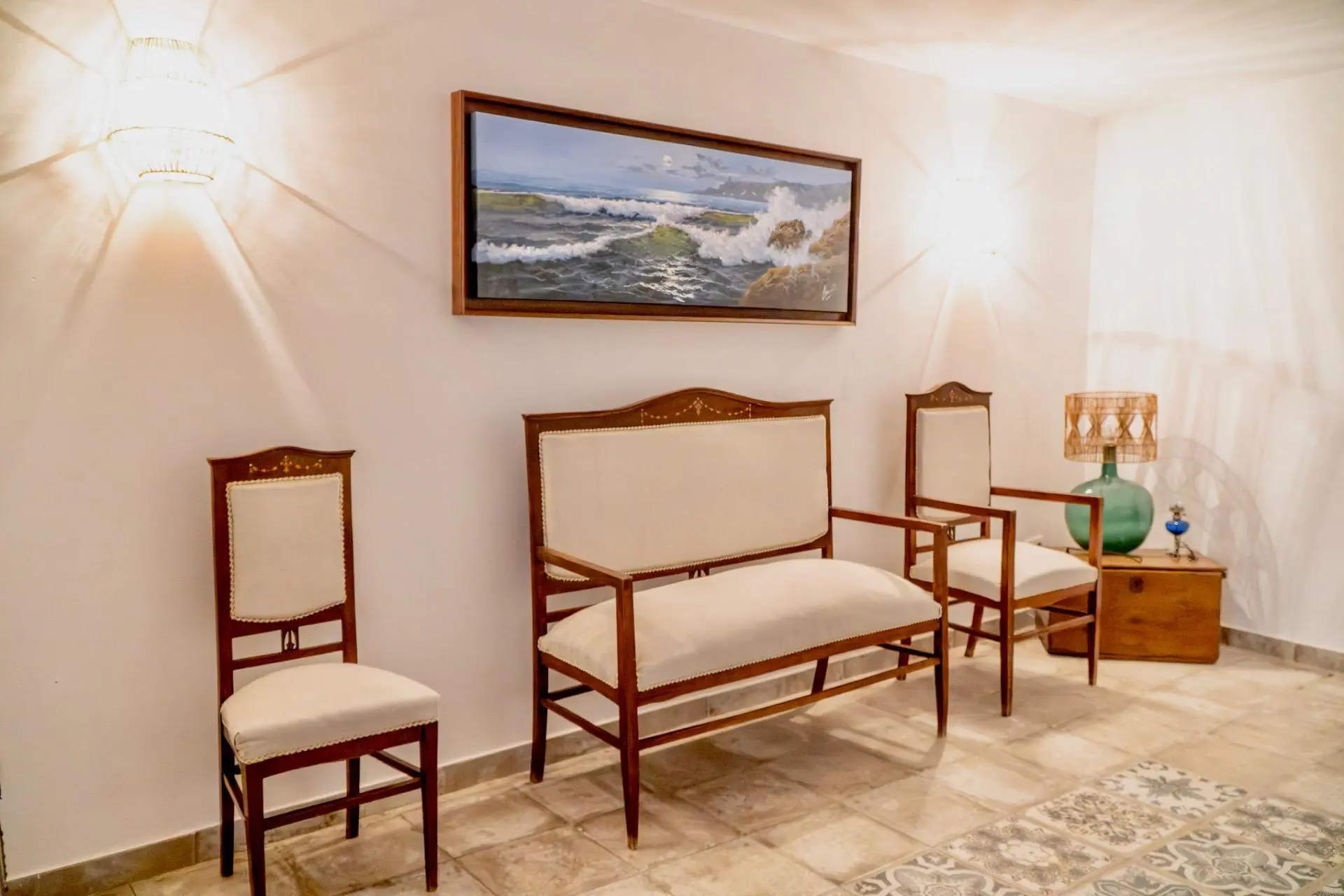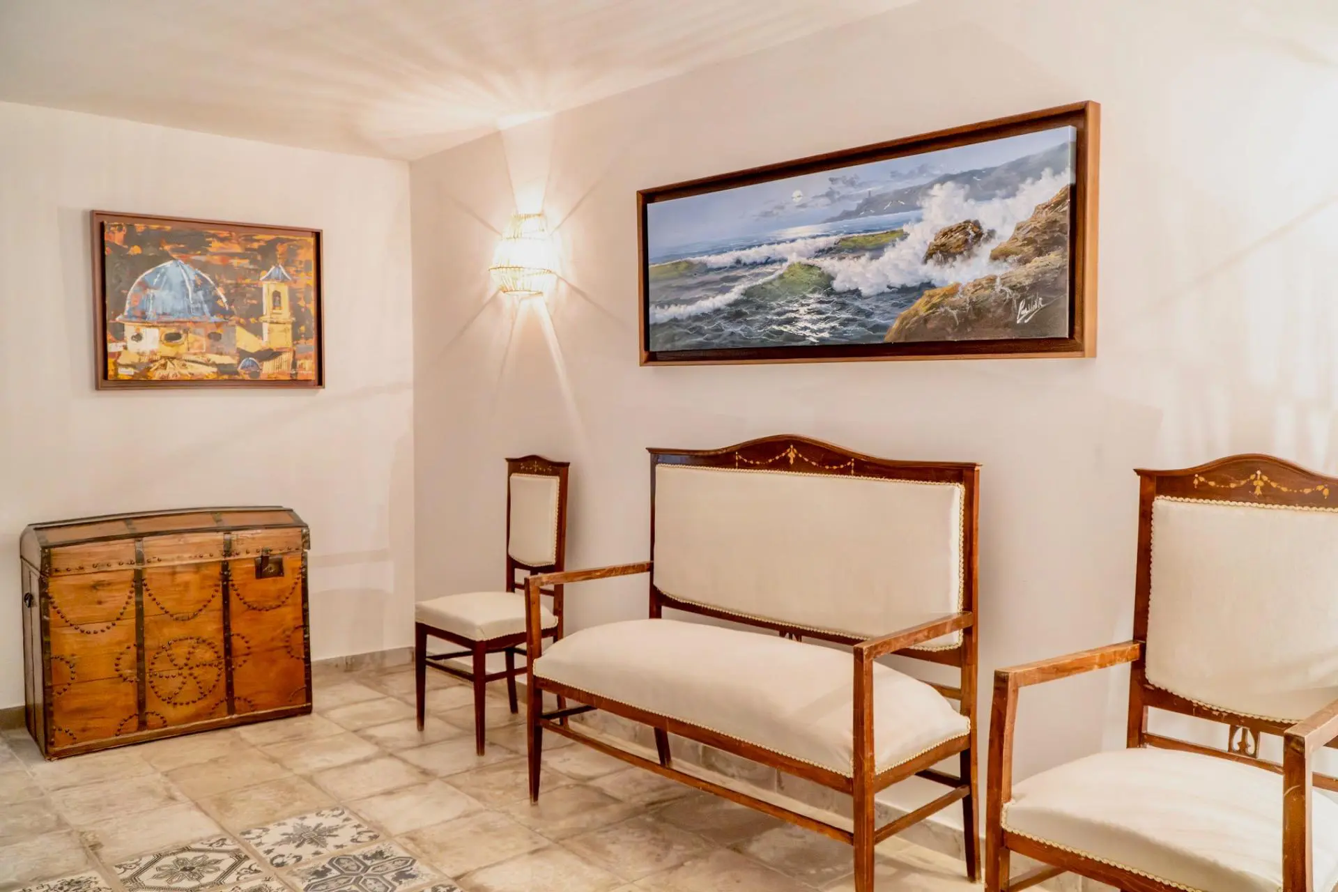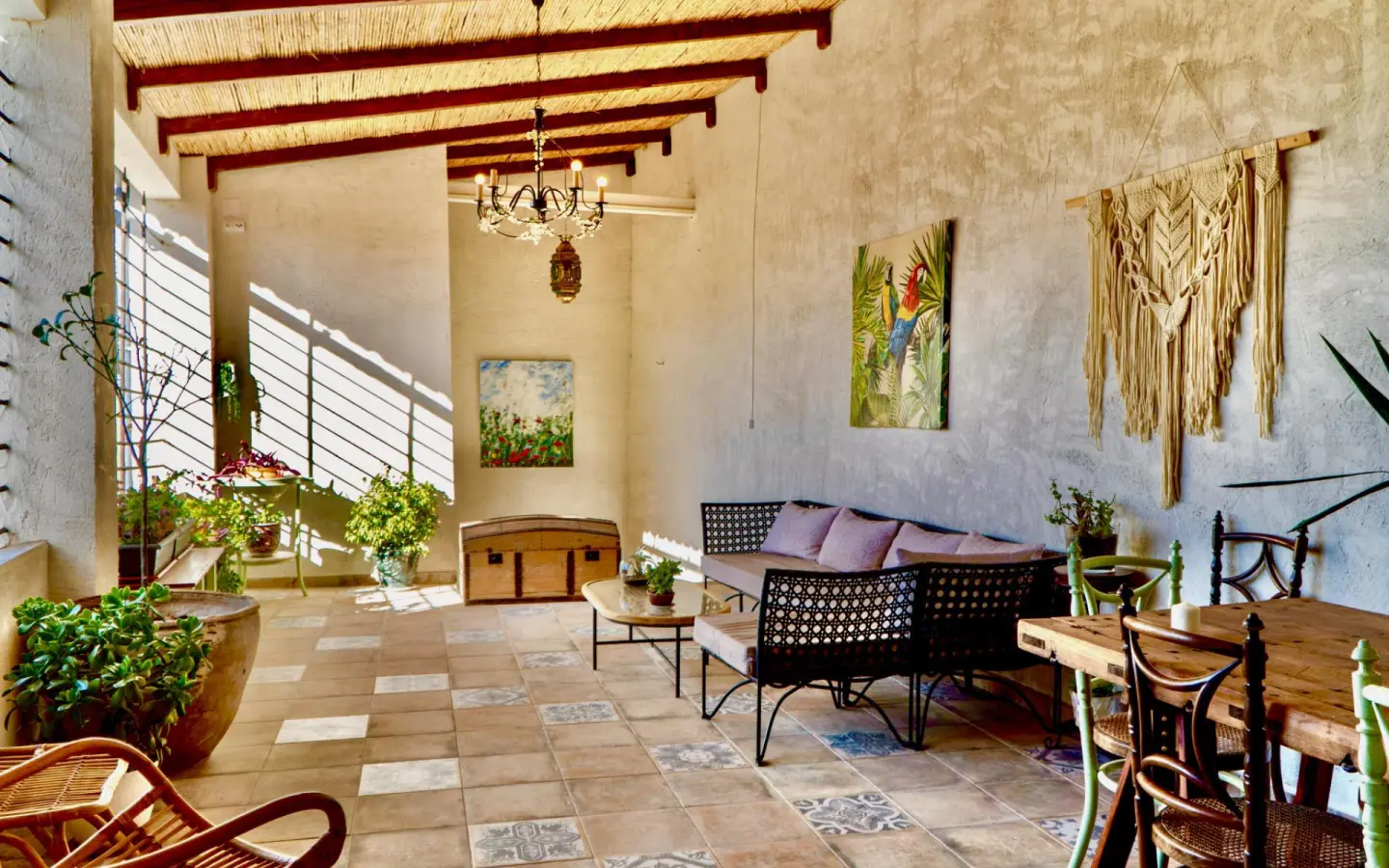 The main floor expands the home and becomes its true social nucleus. You’ll find a living room with a library, a double bedroom with a dressing room and a full bathroom with a shower, forming a suite-like area. There’s a second bathroom featuring a restored bathtub over 300 years old, a piece with its own soul. A spectacular kitchen of approximately 50 square meters is conceived as the heart of the house. A large central table seating 8-12 diners presides over the space, accompanied by a wine area, a tea corner, a separate coffee nook, and an ample pantry. From the kitchen, you access an outdoor terrace with a dining area and a lounge zone, ideal for enjoying the Mediterranean climate with privacy and character.