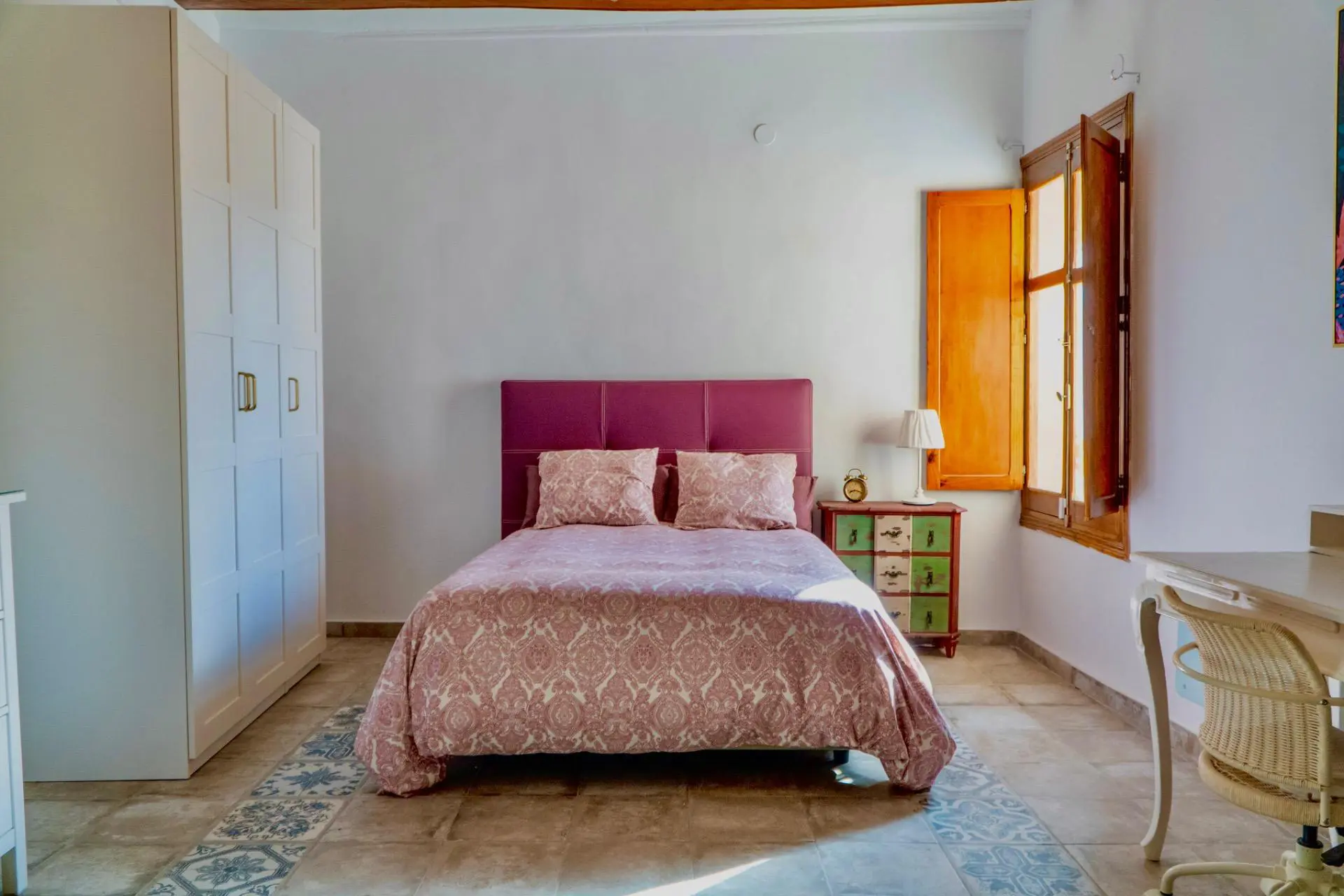 Between floors, a children’s room preserves the original flooring from three centuries ago, a reminder that this house has witnessed generations pass. On the top floor, a loft-style space offers a contemporary open-plan area with a bedroom and living room featuring a minibar, a dressing room, and a separate bedroom, in addition to a full bathroom with a shower. This area opens onto a double-height upper terrace where light and silence create an atmosphere difficult to describe and easy to fall in love with.
