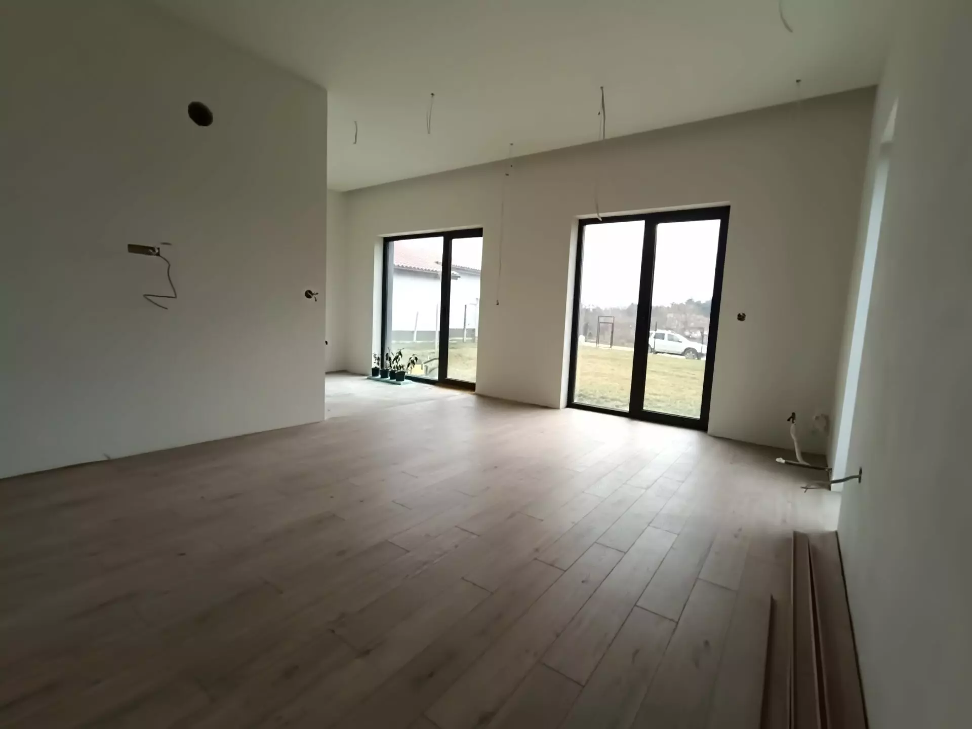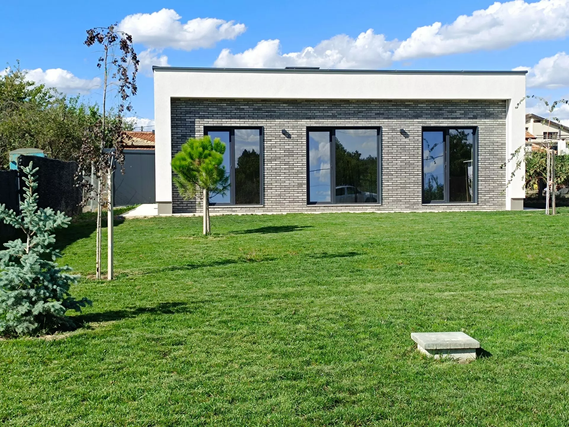 The layout of this home has been designed with modern living in mind. The living room is a generous space, enhanced by floor-to-ceiling French windows that allow a significant amount of natural light to flow in and offer a connection to the outdoors. There are three bedrooms in total, and the property includes two bathrooms. A separate laundry room is also part of the design, which is a practical addition that helps keep the main living areas clutter-free. A notable feature contributing to the sense of openness is the 3-meter ceiling height throughout the home. This elevated ceiling makes the rooms feel more expansive and airy. Energy efficiency has also been a key consideration. The home boasts an Energy Class A rating, thanks to features like Rehau Artevo windows with triple glazing, a clinker brick facade, and a Ceresit thermal insulation system. These elements work together to help regulate the internal temperature, potentially reducing energy costs.