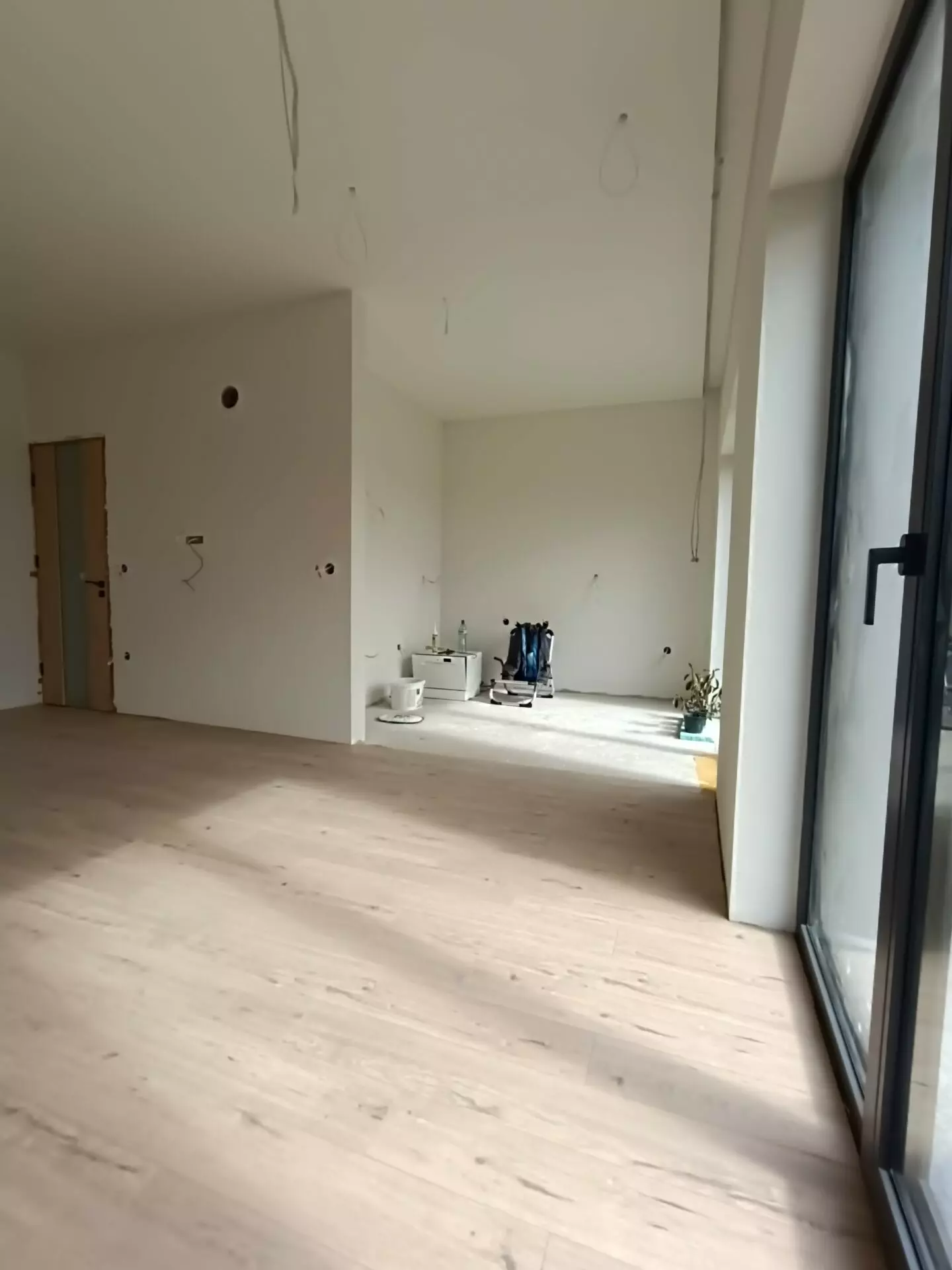 Let’s talk about the finishes that are already in place. The walls and ceilings are painted in neutral, light colors, which serves as a blank canvas for your personal style. When it comes to flooring, you’ll find a good combination of high-quality, 10mm AC4 laminate flooring, known for its durability and ease of maintenance, and premium Italian Marazzi porcelain tiles. These tiles are not just for aesthetics; they’re selected for their quality and longevity. The bathrooms are also fully tiled with the same Marazzi porcelain, and they come equipped with Grohe built-in systems, a brand recognized for reliable plumbing fixtures. Even the doors are a step above. You’ll notice a high-end Hormann entrance door, which is designed for security and insulation, and interior MDF doors with a wood-grain decor that add a touch of natural texture to the spaces.