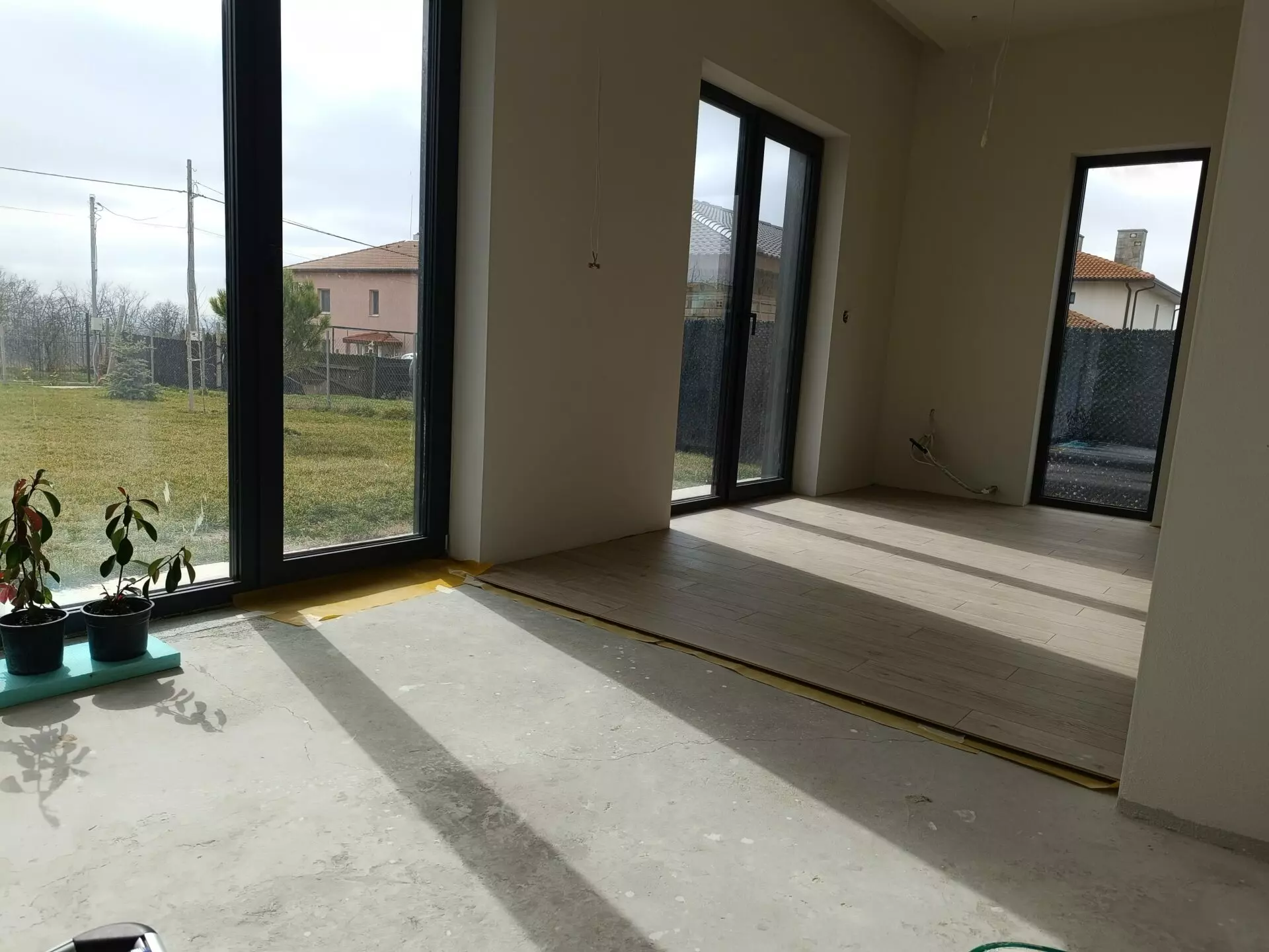 When it comes to the interior, the focus is on quality and neutral aesthetics. The walls and ceilings are painted in light, neutral tones, providing a blank canvas for any decor style. For the flooring, a combination of high-quality laminate, rated at 10mm with an AC4 durability class, is used. This is complemented by premium Italian Marazzi porcelain tiles, particularly in the bathrooms. These bathrooms are fully tiled with the same Marazzi porcelain and feature Grohe built-in systems, indicating a commitment to durable and well-regarded fixtures. The doors are also noteworthy, with a high-end Hormann entrance door providing security and an upscale first impression. Inside, MDF interior doors with a wood-grain decor add a touch of natural texture to the spaces.