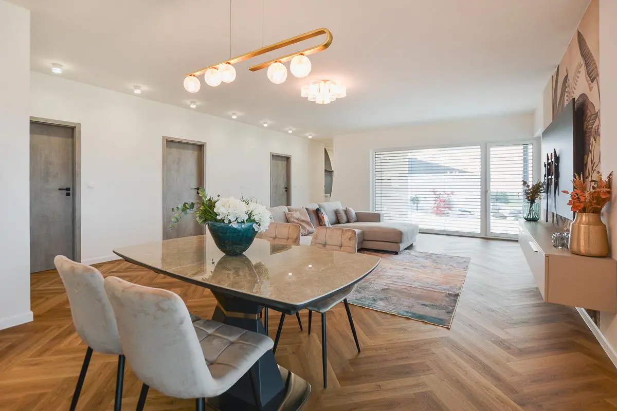 Utilities such as water and electricity are available. For drainage there is a connection to the sewerage system. The house is heated by underfloor heating (powered by the heat pump) and electric ceiling heating. Connecting to the internet is no problem.