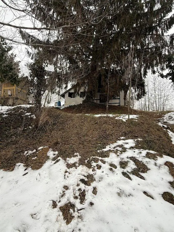 The buildings are in need of renovation, allowing the new owner to furnish them to their own taste. Here, you are purchasing an excellent foundation for creating a cozy weekend home, farm building, beekeeping centre, or even a residential home. You are permitted to build on 20% of the land.