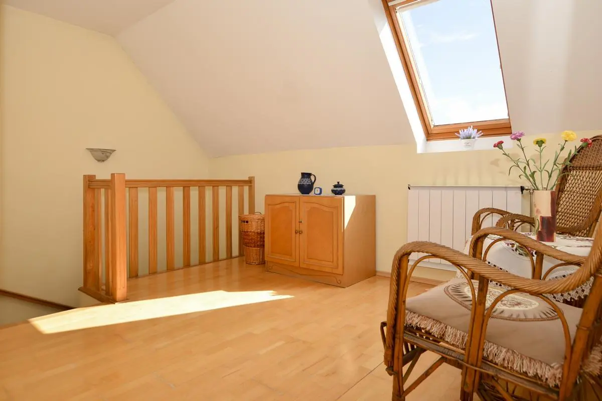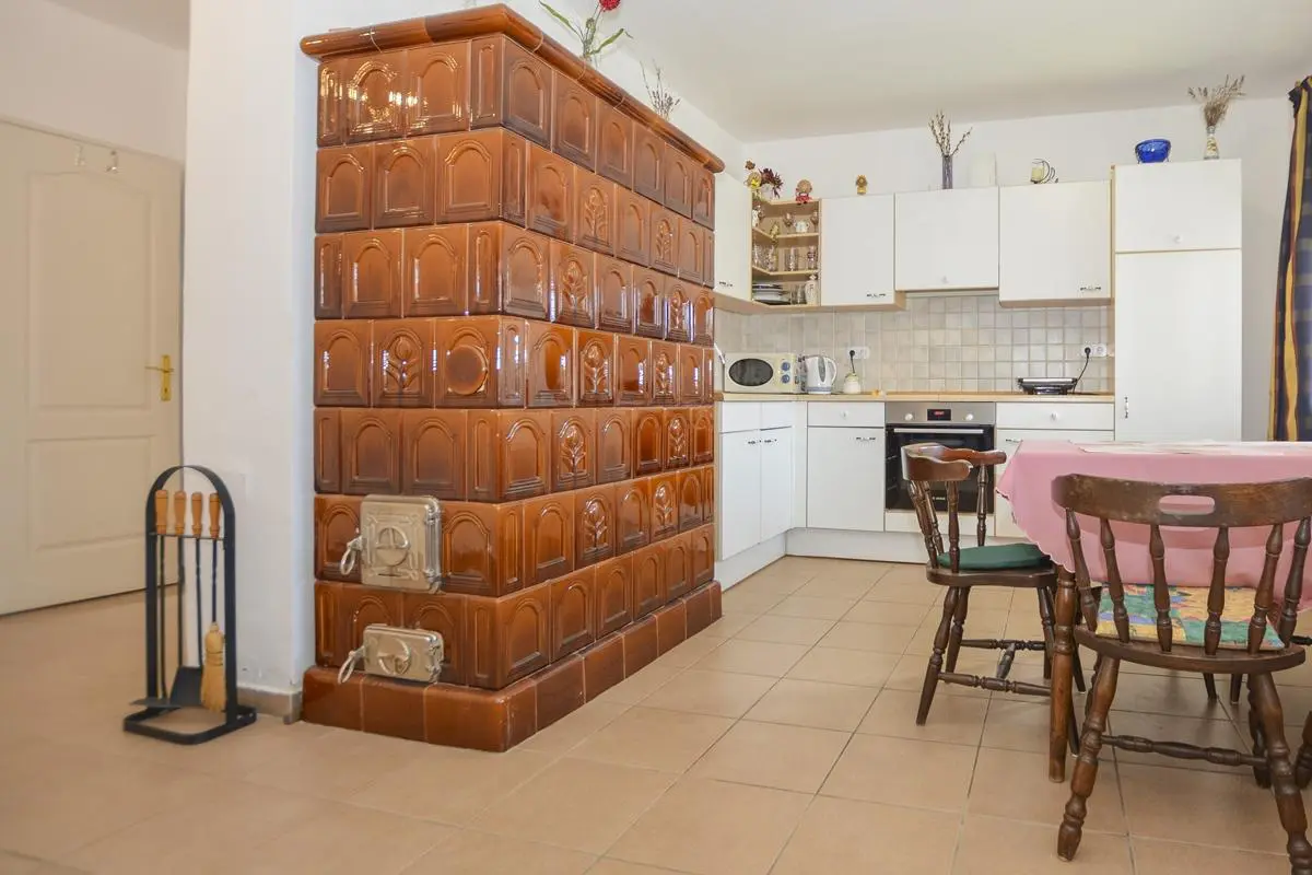 Utilities include water, electricity, and gas. For drainage there is a connection to the sewerage system. The house can be centrally heated with a gas-fired central heating system, as well as the well-functioning tiled stove in the hallway. Internet access is readily available.
