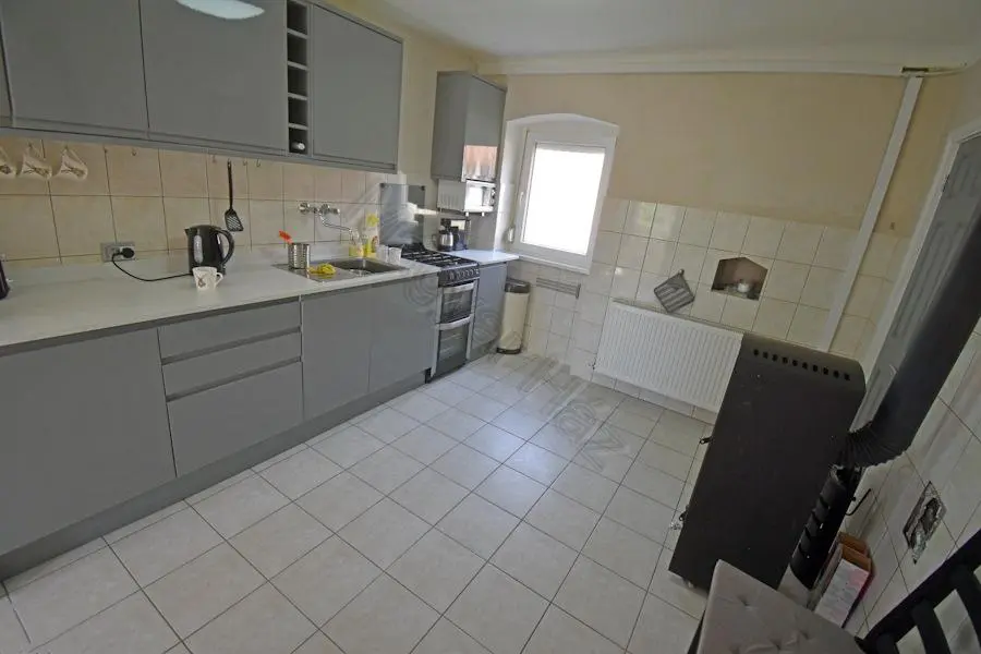 The house has a new roof, new plumbing and electrical systems, and new (plastic) windows and doors. There is a new gas heating system, kitchen, and bathroom. You can move in and enjoy this house right away.