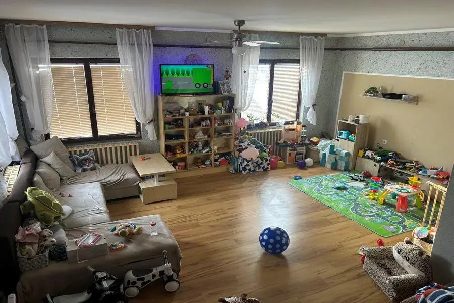 You will have plenty of space here, as there are also two garages, one of which is in the building. The photos make it look like a semi-detached house, but it’s actually one house.