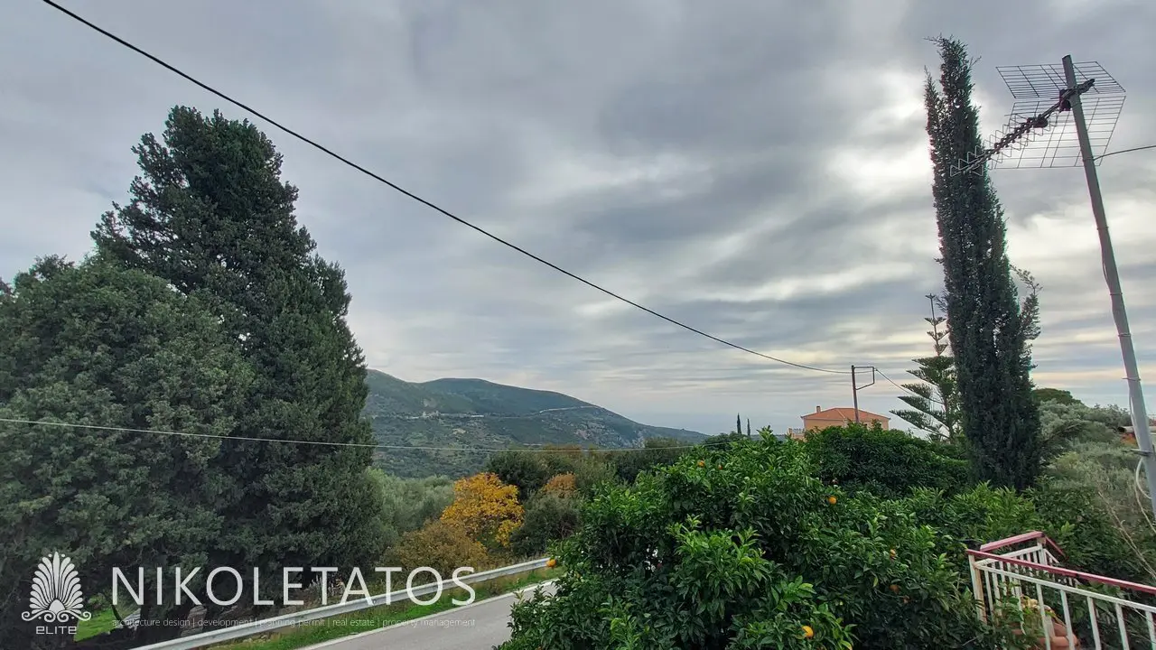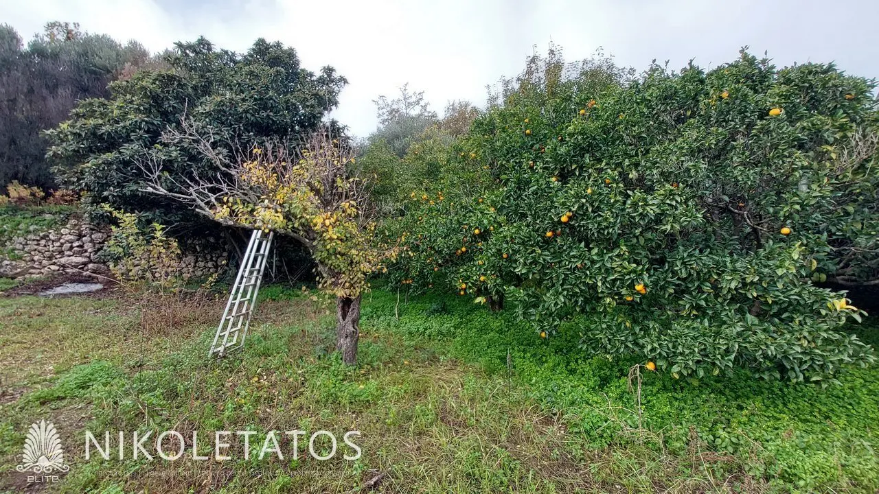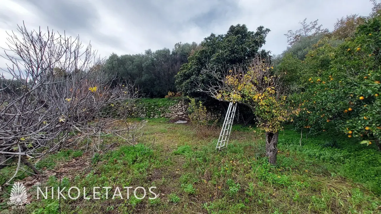 The property is set on an elevated, sloping plot of 2.228 sq.m., arranged in levels with old dry-stone walls, and surrounded by rich, well-maintained vegetation. Olive trees, lemon and orange trees, other citrus varieties, and ornamental plants enhance the beauty of the garden and ensure privacy.