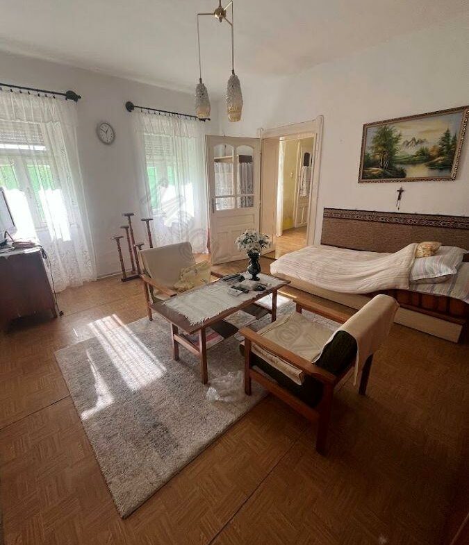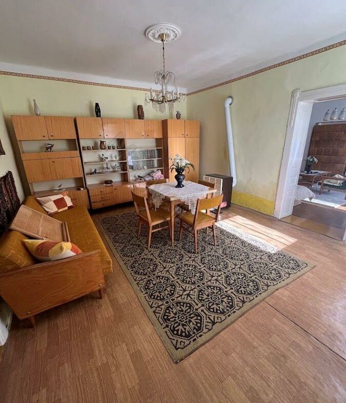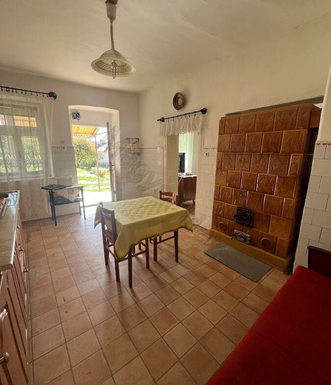 The plot measures 1,799 m². This area is suitable for gardening, animal keeping, or simply enjoying outdoor activities. Essential utilities such as electricity and water are available, while gas can be connected from the street. For drainage, there is a connection to the local sewerage system. The house is currently heated using a tiled stove along with a traditional wood-burning stove. Internet access is readily available in this area.