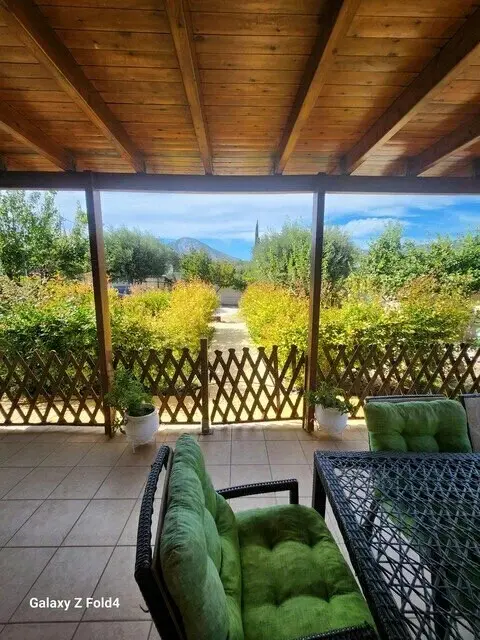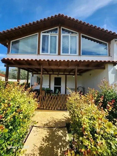 The windows offer a view of the mountain and the forest. The house is equipped with solar panels for water heating, air conditioning, and a heating system. There is also a designated barbecue area.
