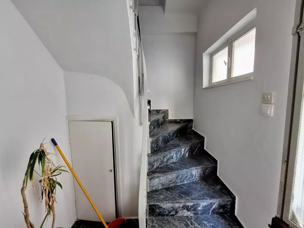 A marble staircase from the foyer leads to an additional room on the upper floor, currently used for storage but ideal as a third bedroom or guest room. From here, a door opens to the roof terrace.