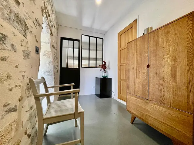 This house is positioned in a quiet spot in the heart of the village and has been fully renovated using quality materials. With a total living space of 105 square meters, it includes a lounge area, equipped kitchen, and dining space. The layout offers flexibility with 2 to 3 bedrooms and 2 shower rooms, along with a terrace that is not overlooked, providing a private outdoor space for residents. Parking for vehicles is available nearby.