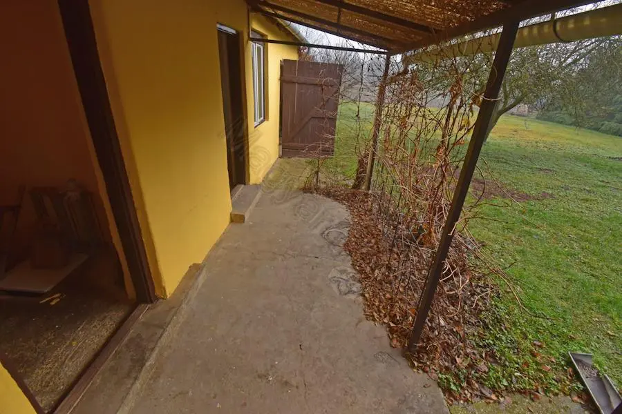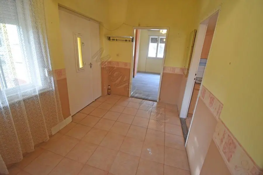 The plot spans 1,192 m², offering ample space for a well-maintained garden. Several fruit trees enhance the outdoor area. Adjacent to the house, you’ll find a summer kitchen, a shed, and a garage. The summer kitchen and shed have potential for conversion into a guest room, providing additional living space.