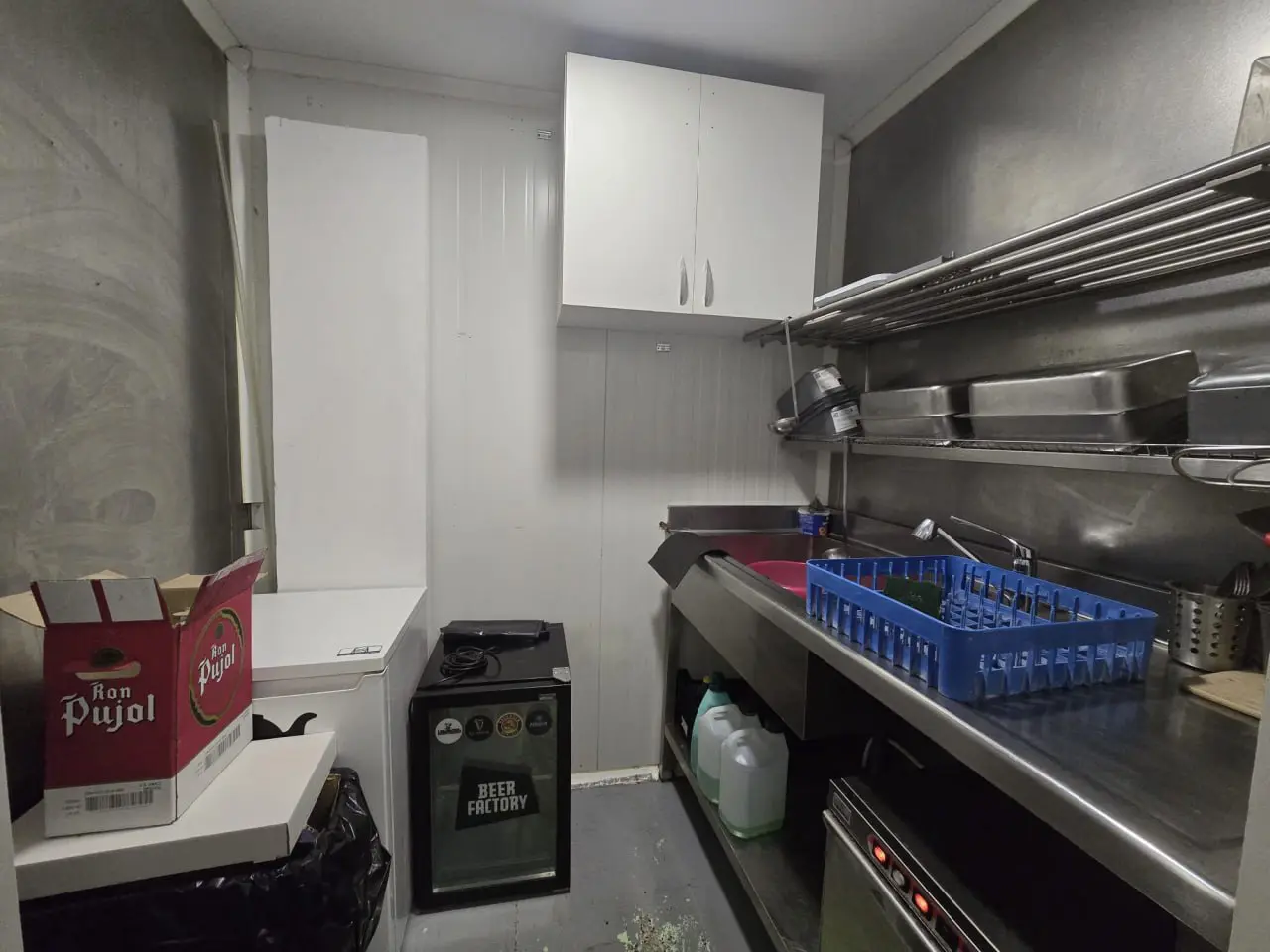 This shop comes equipped with several beneficial features that enhance functionality. An automatic door facilitates maximum accessibility for all customers. Inside, you will find high-quality aluminum cabinets providing durability and storage.