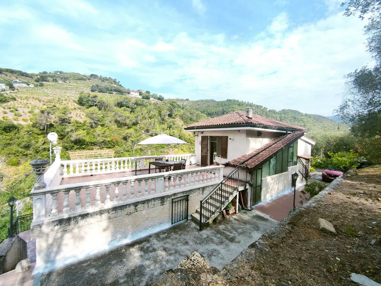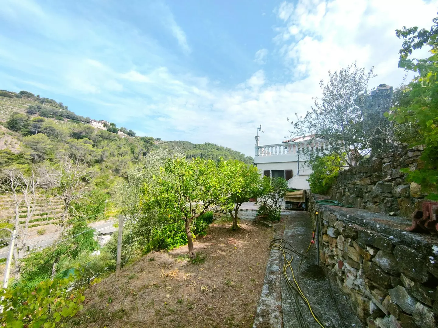 La posizione panoramica e l’esposizione a sud-ovest garantiscono un’ottima luminosità e una vista mozzafiato sulla vallata. L’accesso alla proprietà avviene tramite una strada comunale asfaltata, con ingressi carraio e pedonale. I posti auto si trovano all’interno della proprietà.