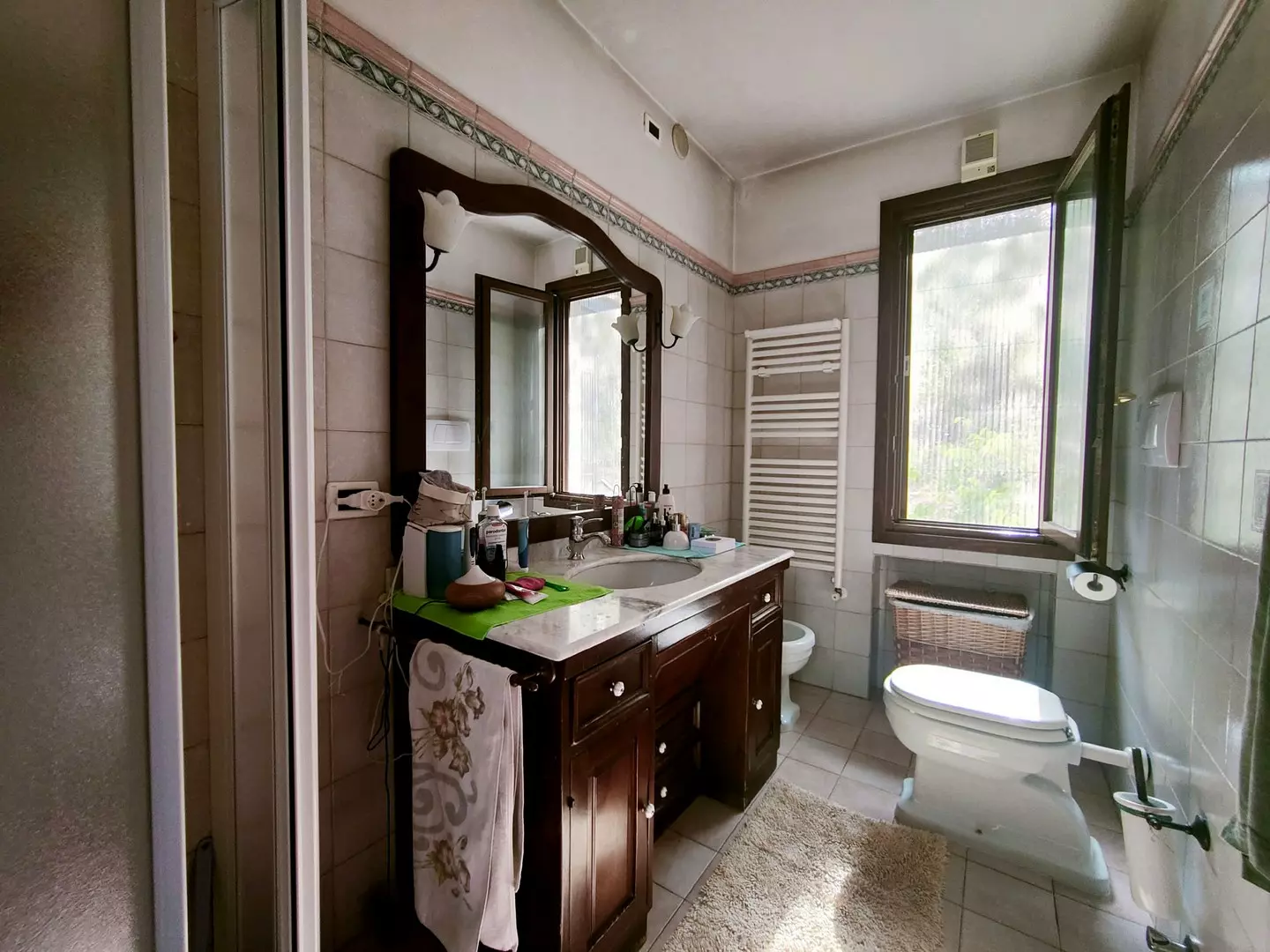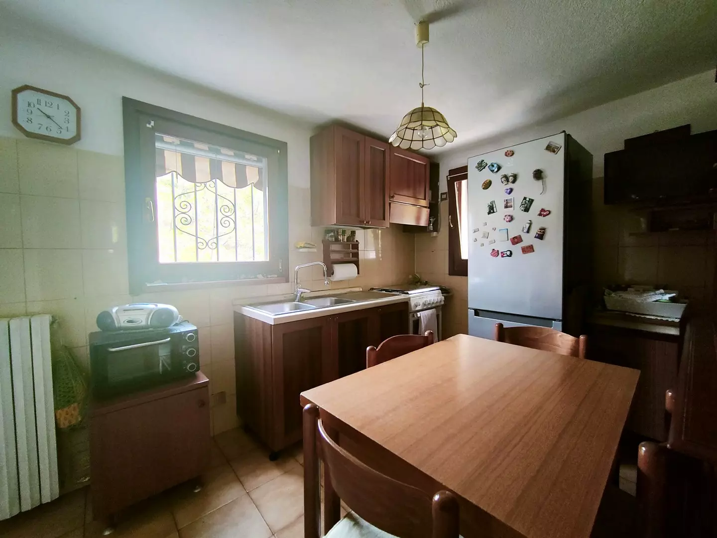 Gli infissi sono in legno con doppio vetro, e il riscaldamento è autonomo con radiatori alimentati da una caldaia a GPL con bombolone interrato.