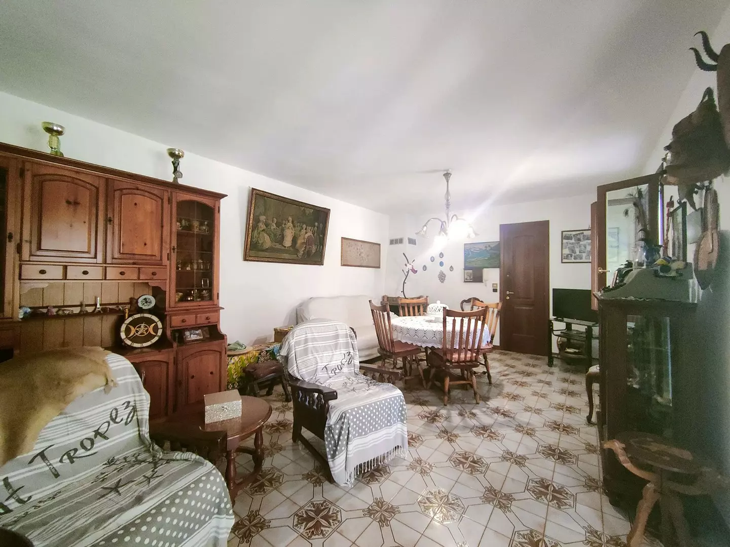 Il piano seminterrato presenta una superficie abitativa di 100 mq ed è composto da un ingresso su un soggiorno con caminetto, perfetto per creare un’atmosfera accogliente durante le stagioni più fredde. Troviamo poi una cucina separata, due spaziose camere da letto e due bagni. L’esterno offre un ampio terrazzo di 70 mq, ideale per pranzi all’aperto o per rilassarsi ammirando la vista sulla vallata circostante, oltre a un giardino di 300 mq.