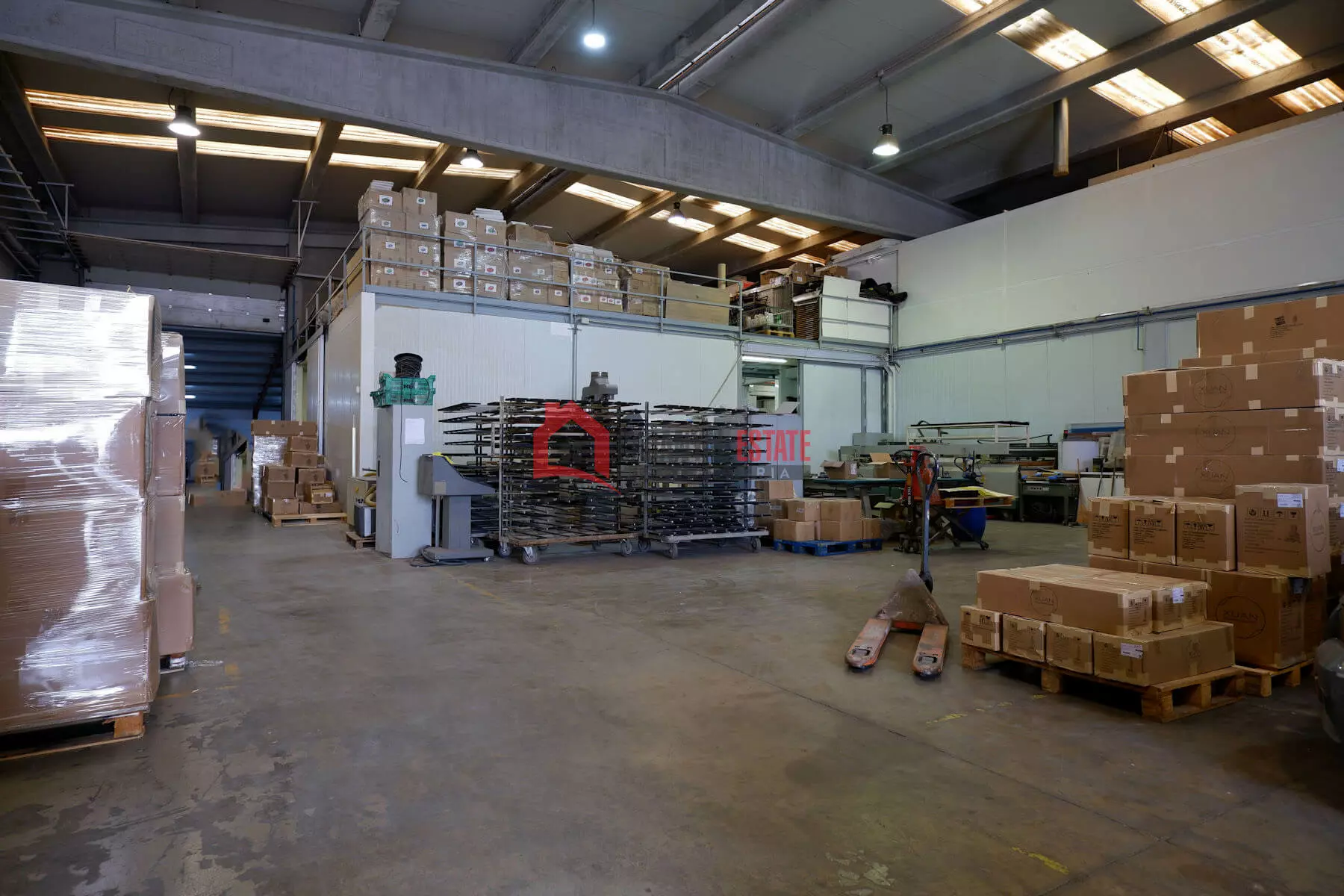 The total usable area of this warehouse is 1693 m², which includes a well-thought-out layout. The ground floor features a main warehouse area, an office space, a changing room, two toilets, and three storage rooms. Moving to the first floor, you will find additional office space, two more offices, two toilets, another warehouse, a living room, and two changing rooms. This structure provides versatility to accommodate various business needs.